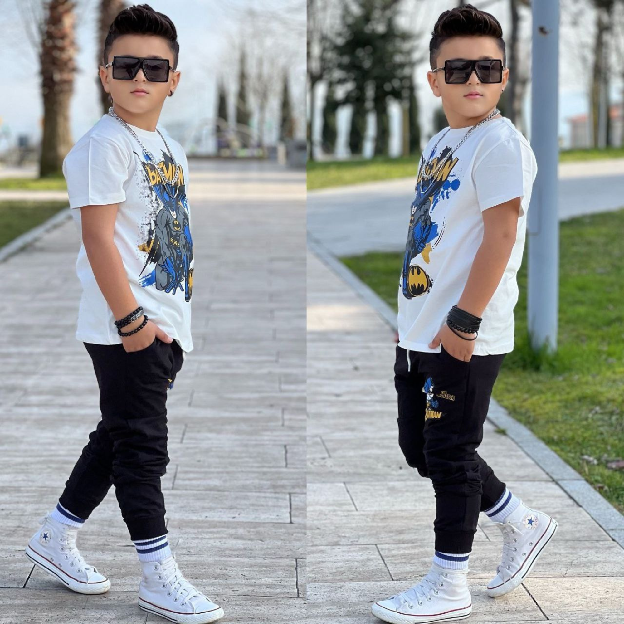 Collège (6-8) : Tenues confortables mais élégantes, notamment des chemises décontractées, des sweats à capuche et des pantalons résistants pour les journées actives.
