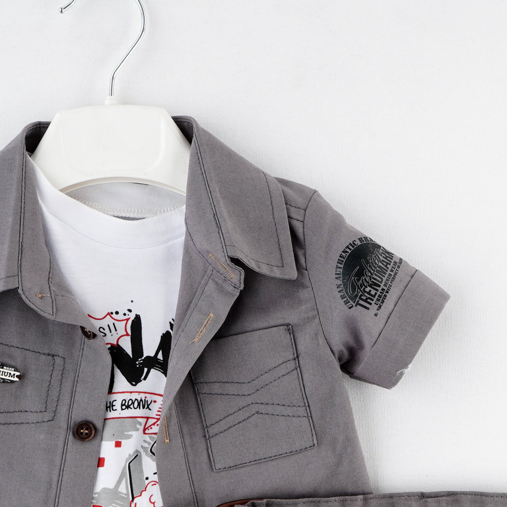 Préparez votre petit garçon pour l'été avec notre élégant ensemble pour garçons ! Cet ensemble comprend une chemise classique en coton doux, un t-shirt imprimé confortable, un short en coton assorti et une ceinture. Parfait pour les journées ensoleillées et pleines d'aventures !
