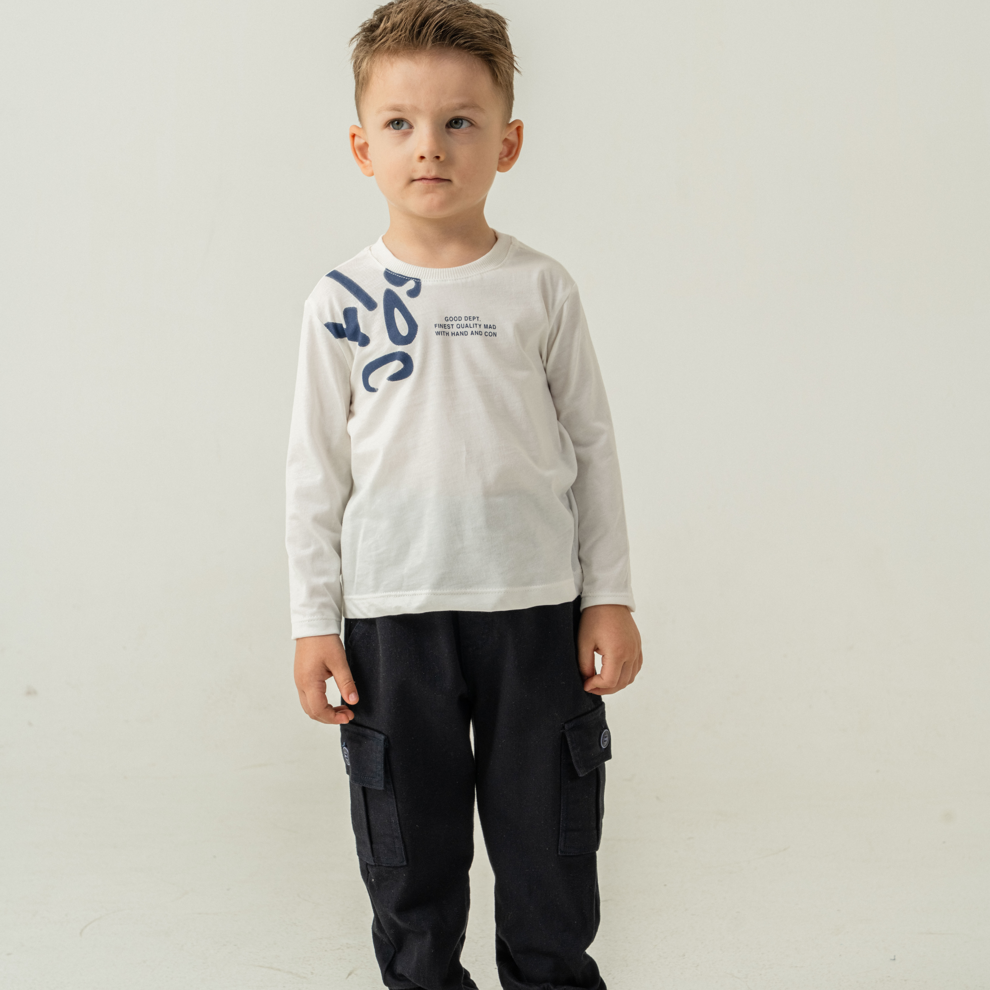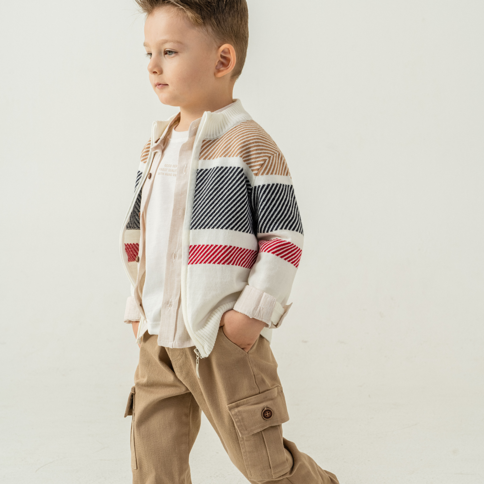 Cet ensemble élégant comprend une chemise 100 % coton, un t-shirt, un pull à fermeture éclair et un pantalon de jogging cargo, parfaits pour toutes les occasions. Grâce à son design classique et à sa coupe confortable, votre enfant sera à son avantage et se sentira à l'aise.