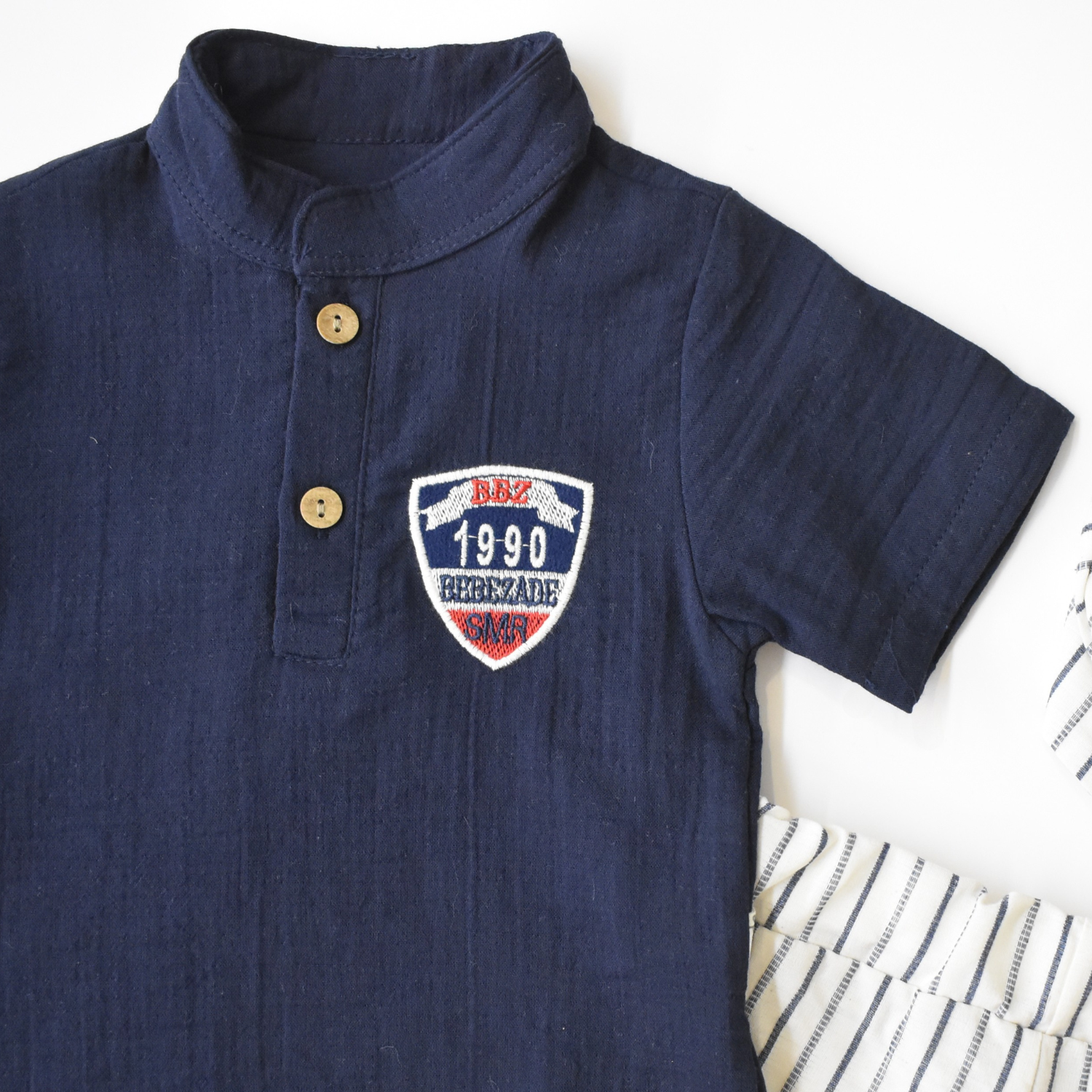 Offrez à votre petit garçon confort et style avec cet ensemble classique ! Confectionné en 100 % coton doux et respirant, cet ensemble comprend un polo avec un col confortable et des shorts rayés pour un look coordonné et ludique. Idéal pour les journées décontractées ou les sorties en famille, cet ensemble allie confort et style pour votre bébé garçon.