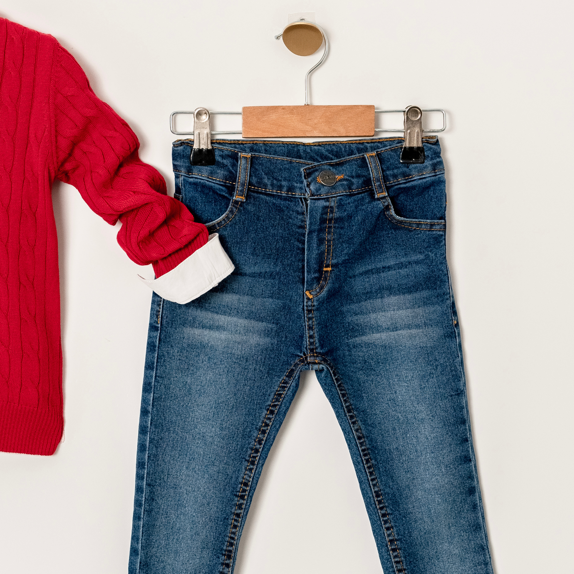 Ensemble pull et jean rouge vif