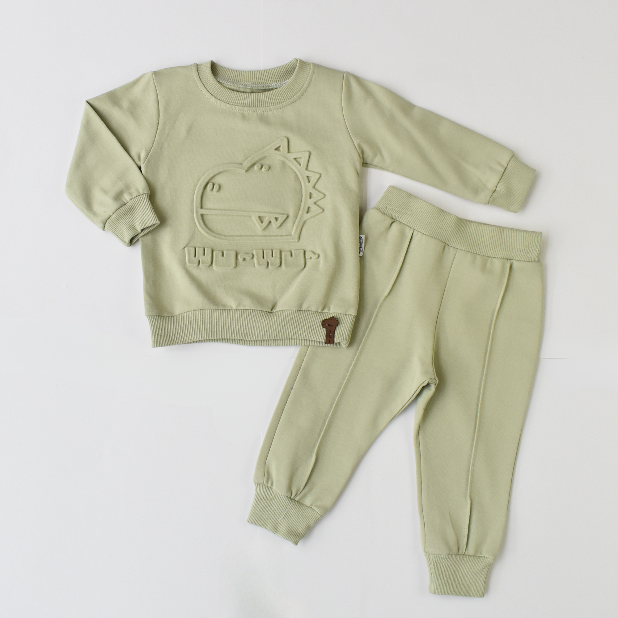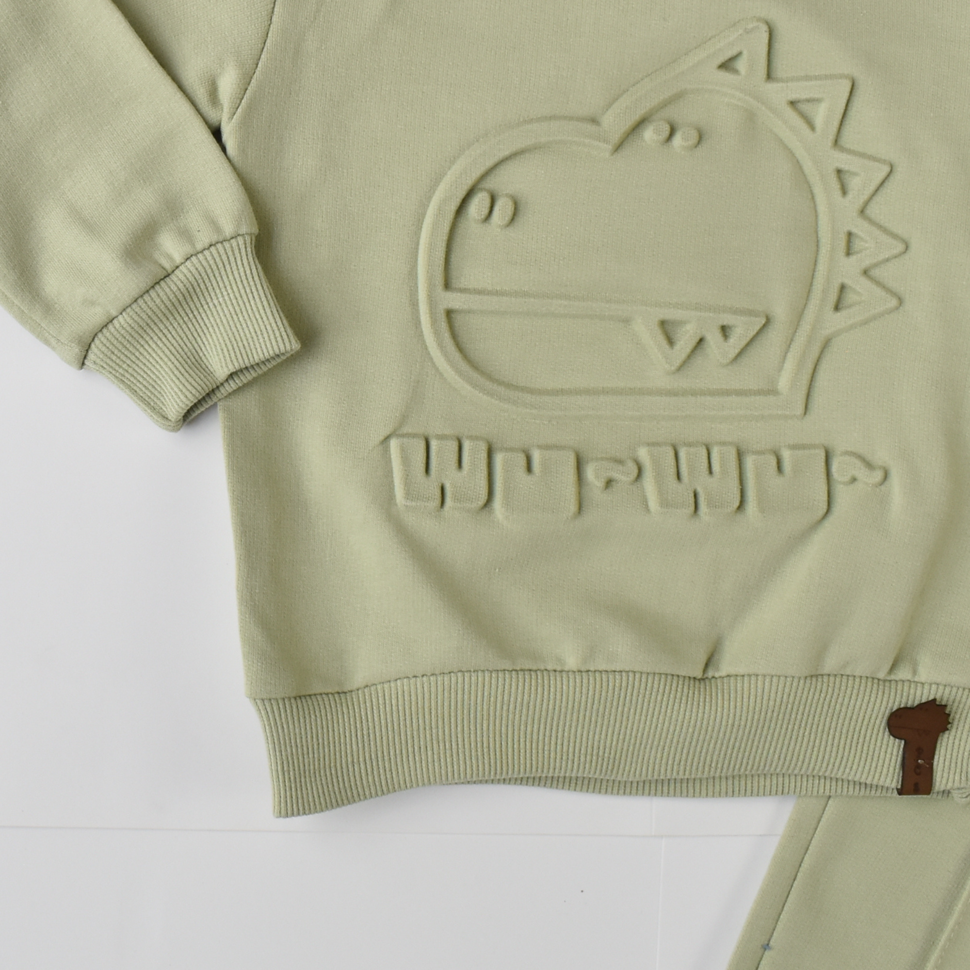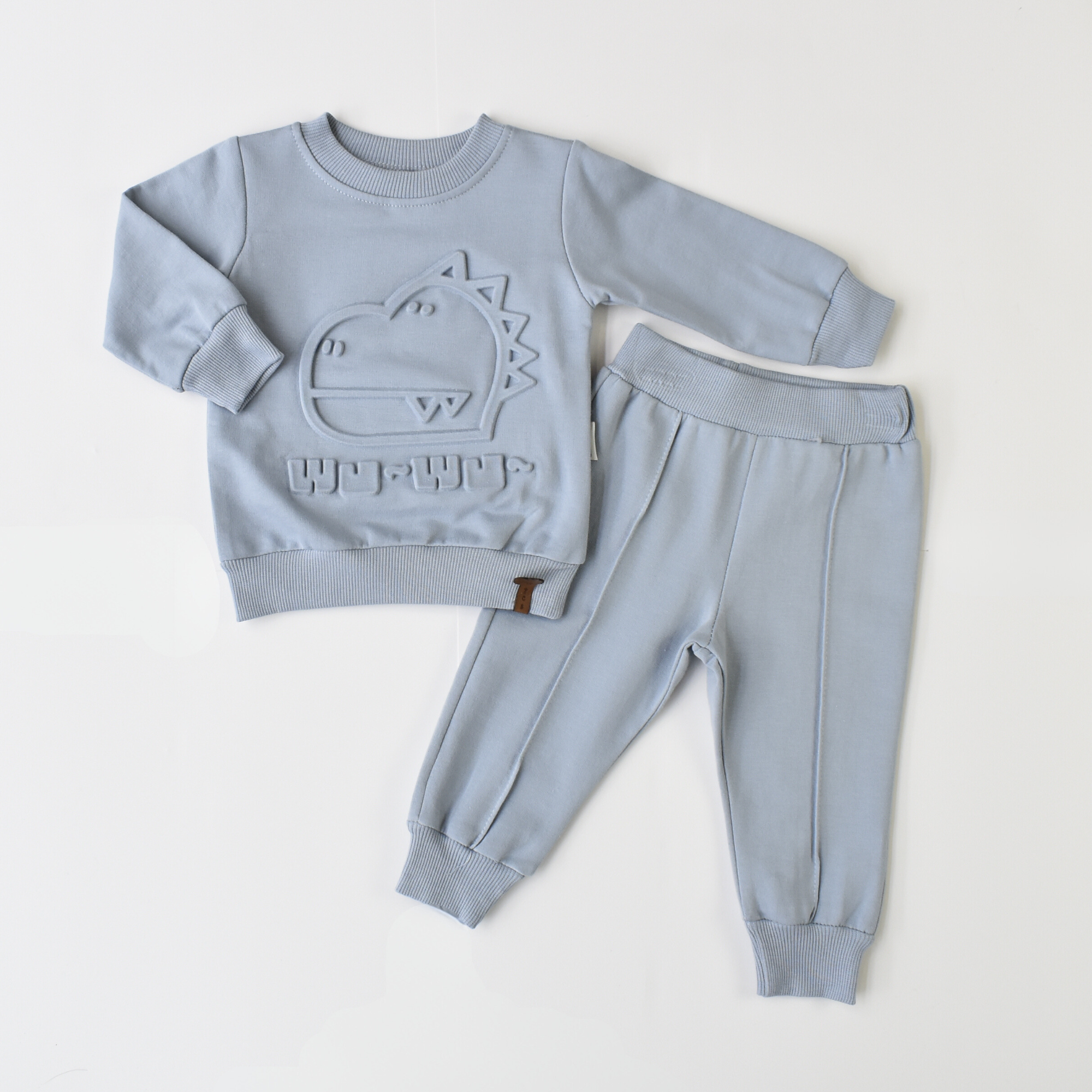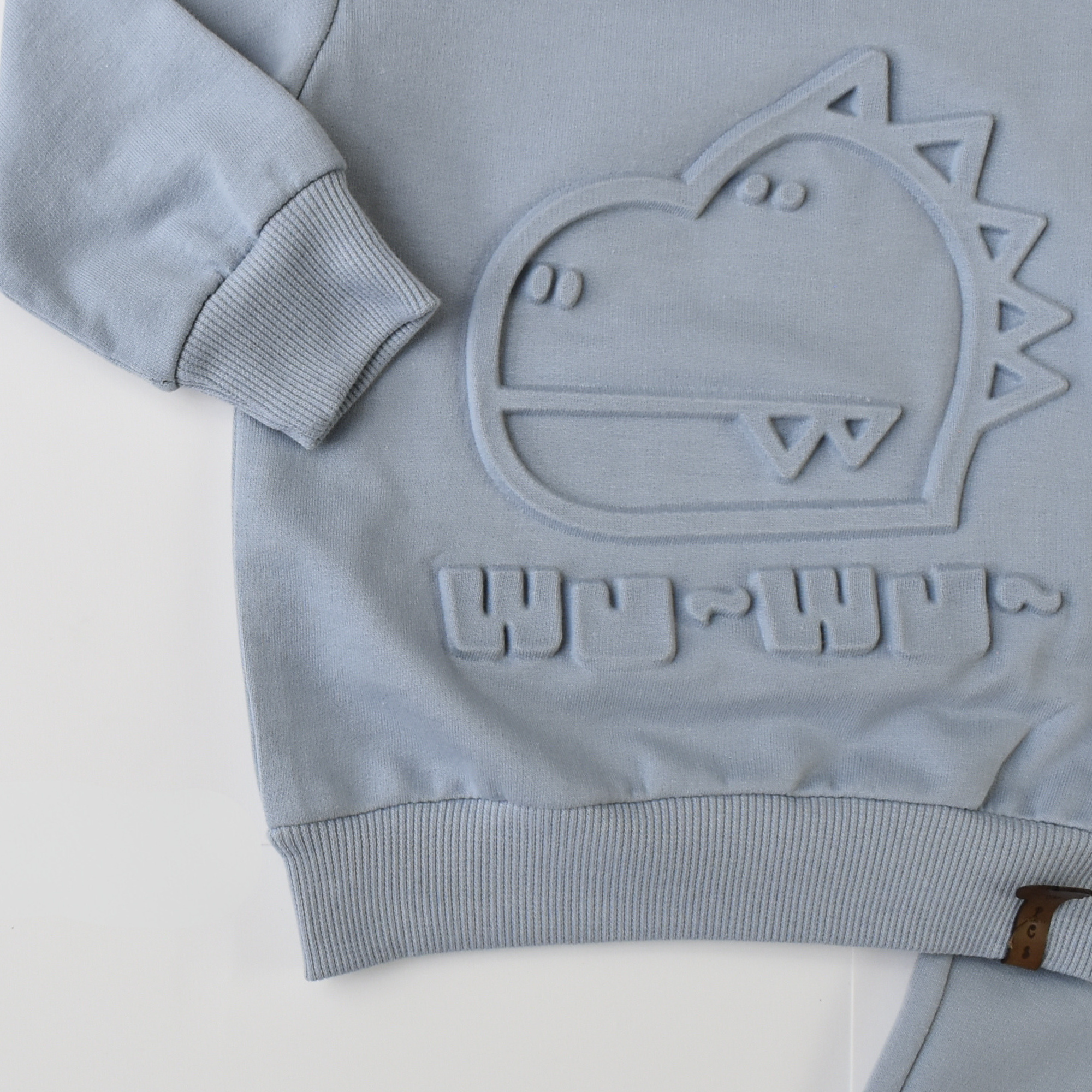 Ce magnifique ensemble comprend un pull à manches longues imprimé en 3D (100 % coton) et un pantalon de jogging à bas élastiqué, pour que votre petit reste élégant et au chaud (100 % coton).