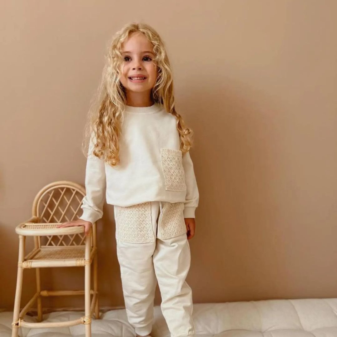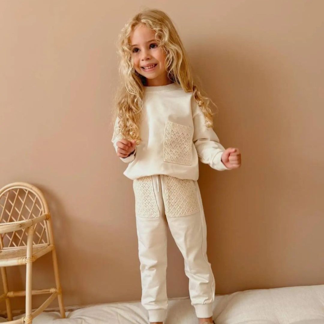 Découvrez notre ensemble élégant en dentelle fantaisie pour fille ! Fabriqué en 100 % coton, ce jogging est orné d'une délicate bordure en dentelle pour un confort et un style parfaits. Laissez votre enfant courir et jouer en toute liberté dans ce jogging résistant.