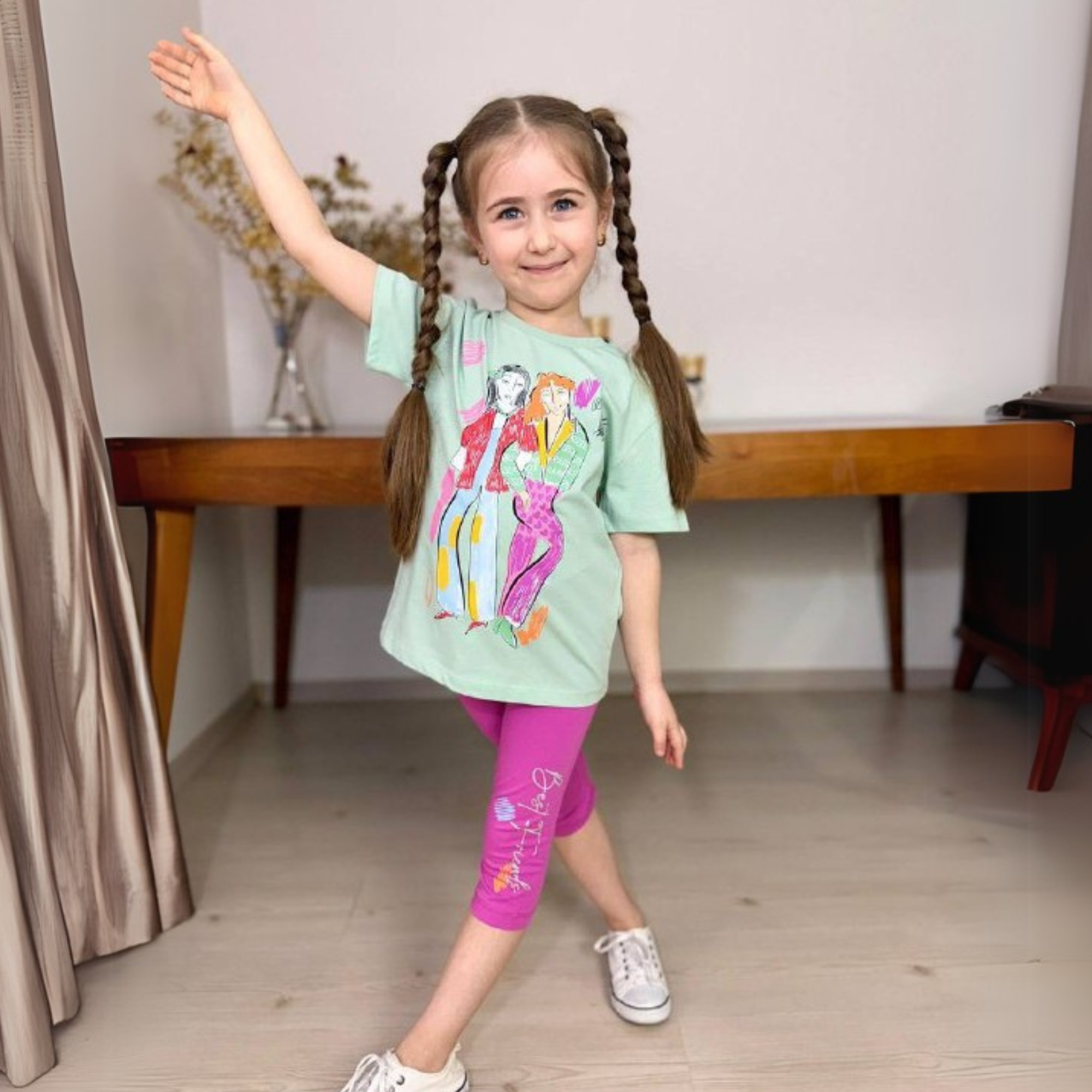 Vivez l'aventure en plein air ultime avec cet ensemble estival stylé, composé d'un haut imprimé en coton doux (100 % coton) et d'un legging léger en coton (100 % coton) ! Parfait pour toutes vos activités amusantes sous le soleil !