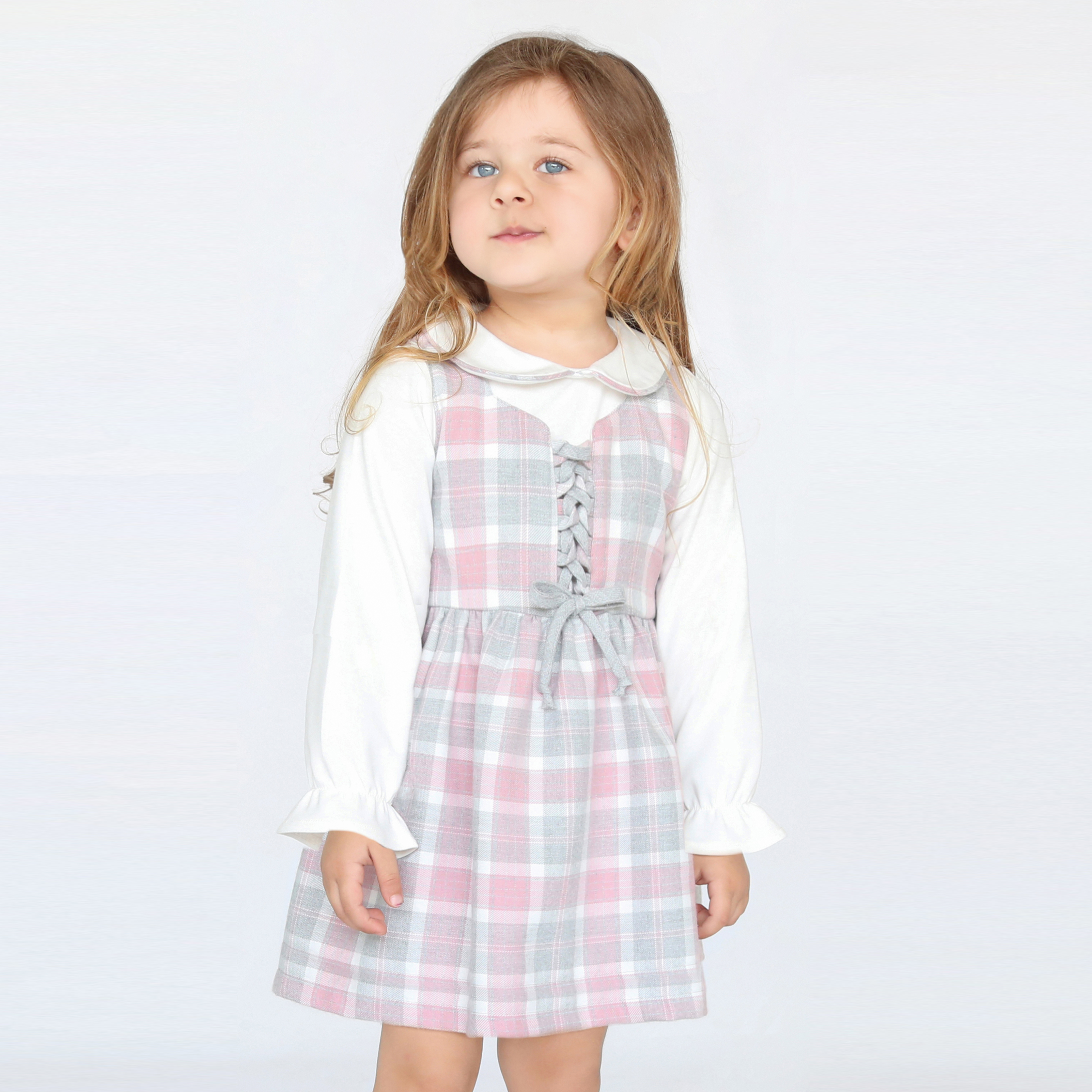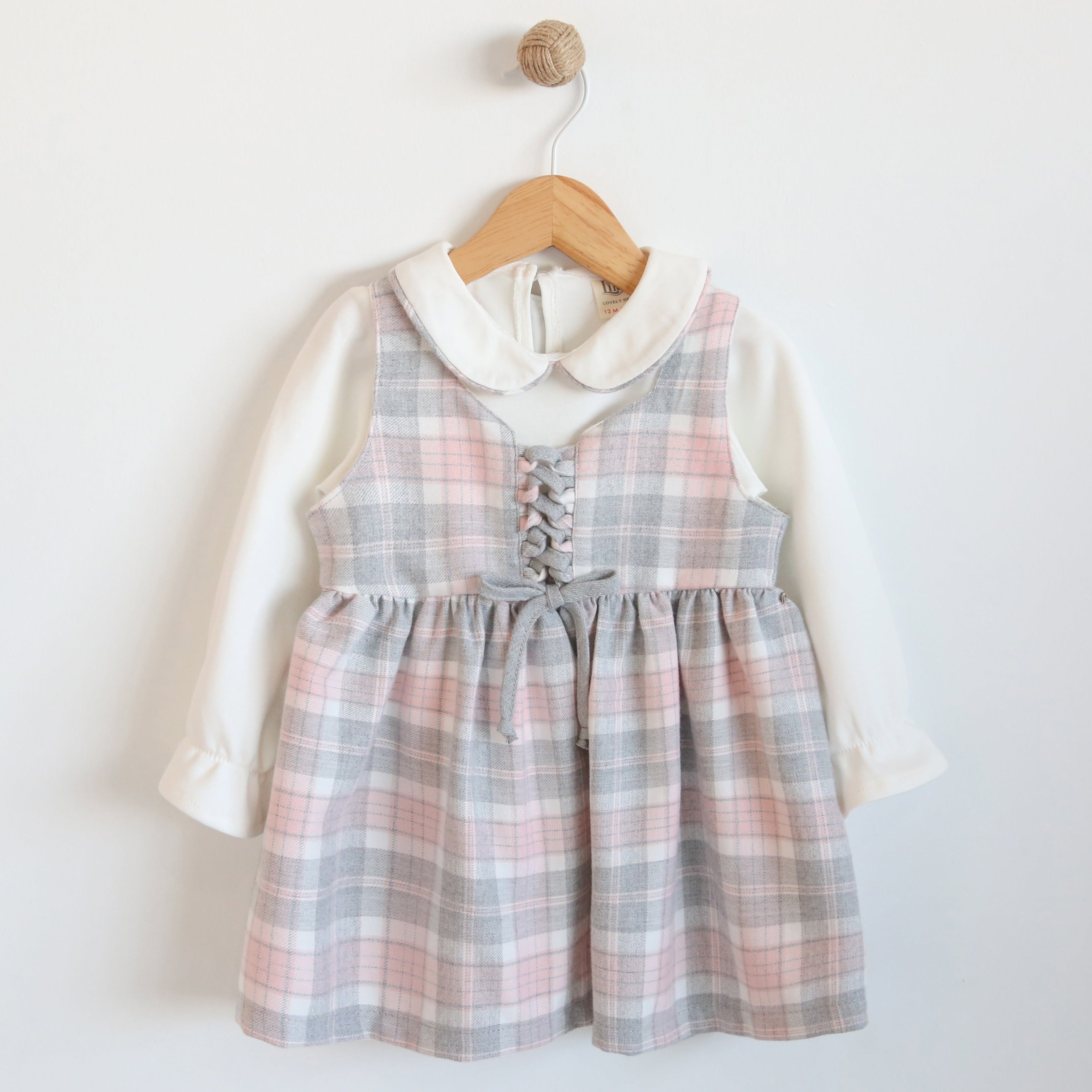 Superbe robe très originale en coton à carreaux (100% coton) pour votre petite chérie avec un haut col anglais en coton tout doux pour tous vos événements des fêtes !