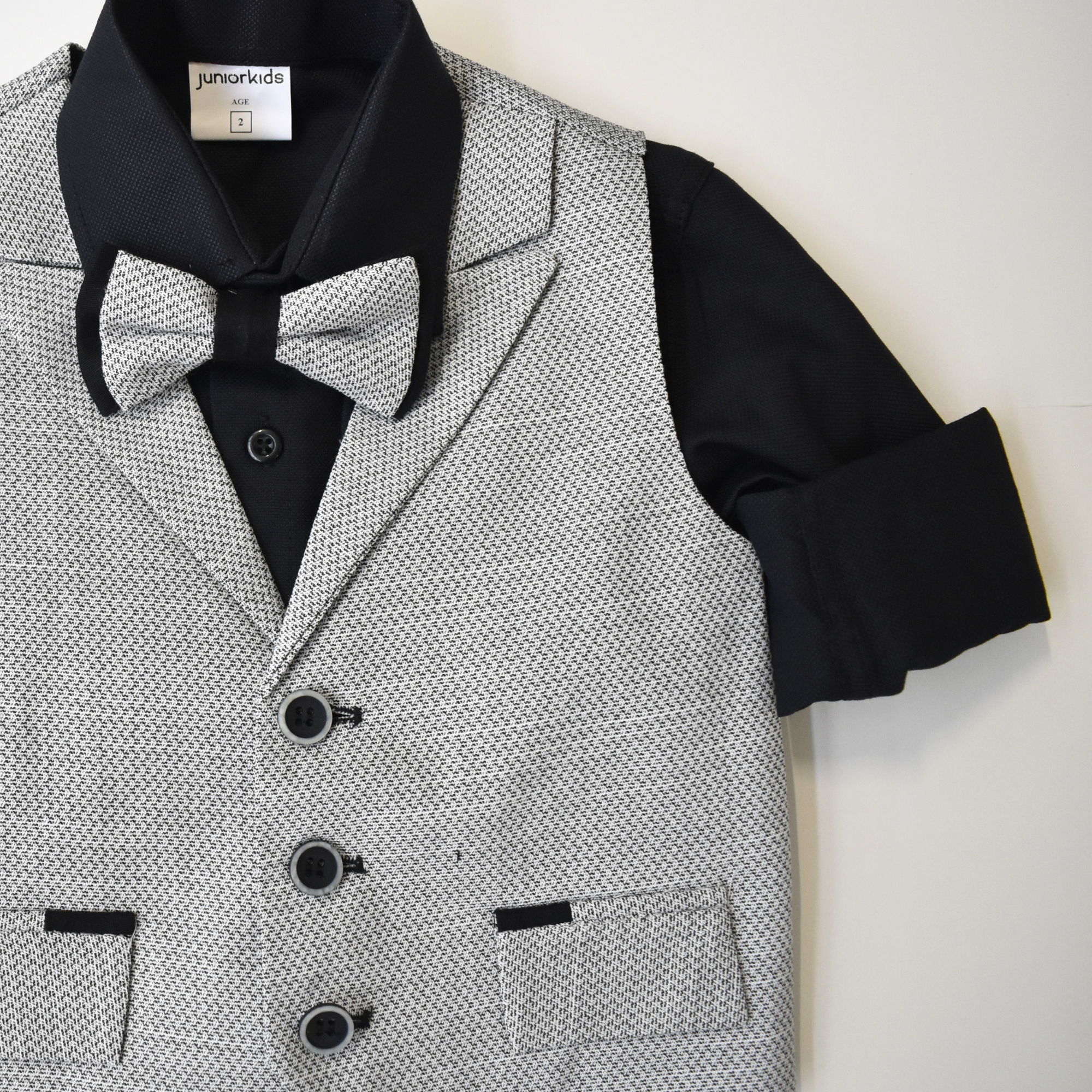 Habillez votre petit gentleman avec élégance grâce à cet ensemble raffiné. Idéal pour les occasions spéciales ou un look chic au quotidien, cet ensemble comprend :