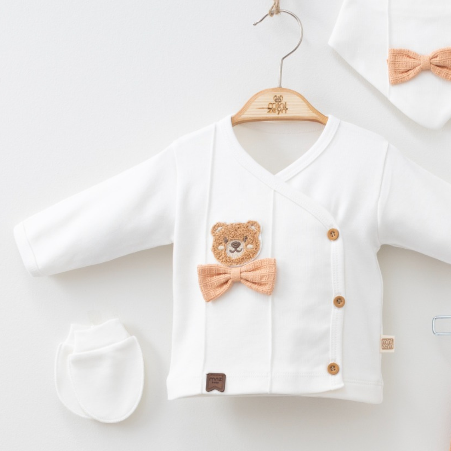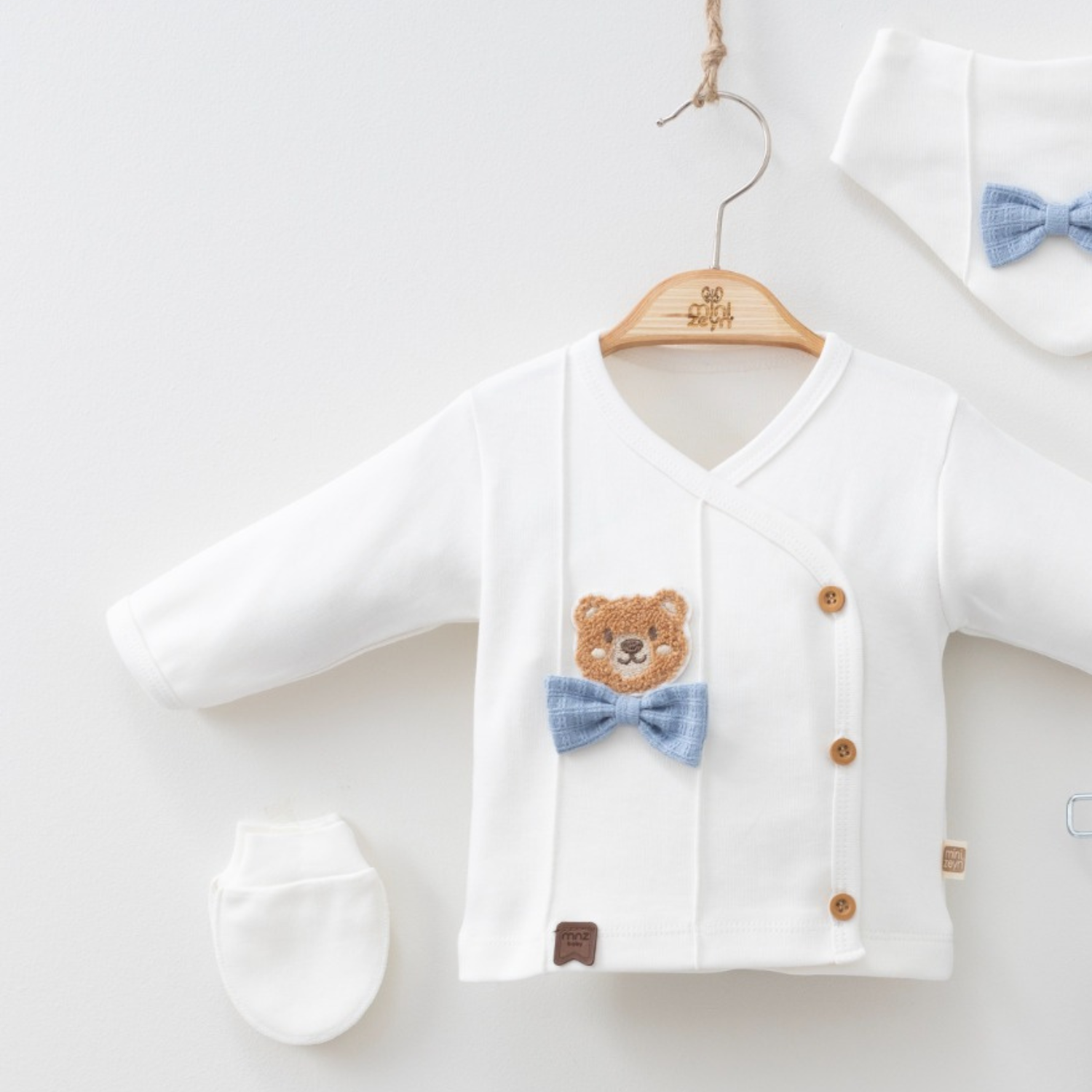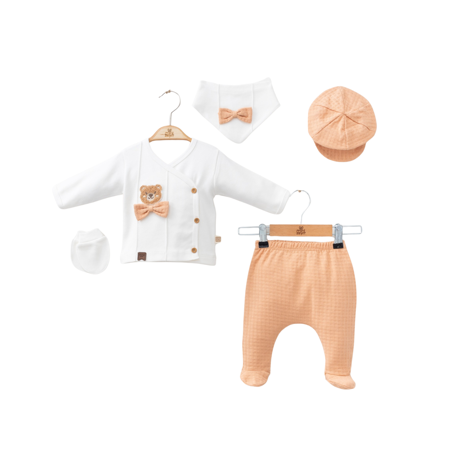 Ensemble 5 pièces pour nouveau-né avec nœud papillon et ours
