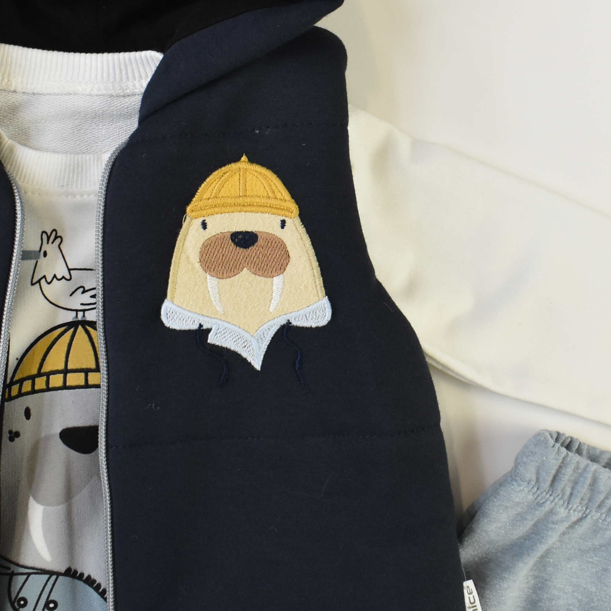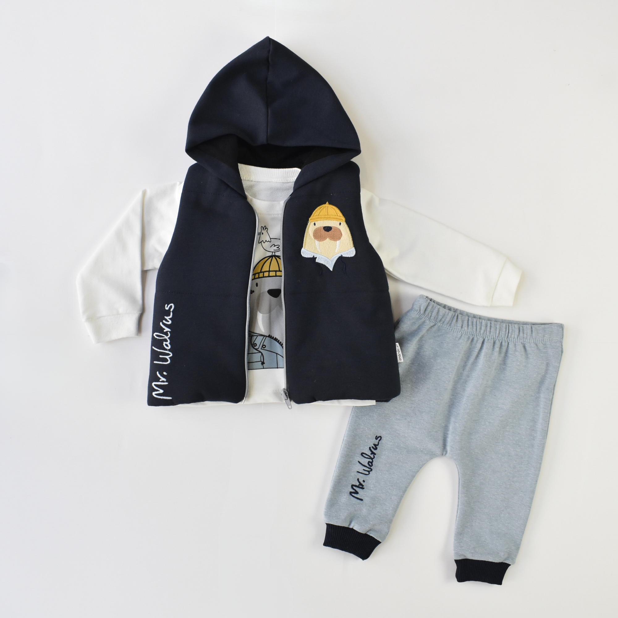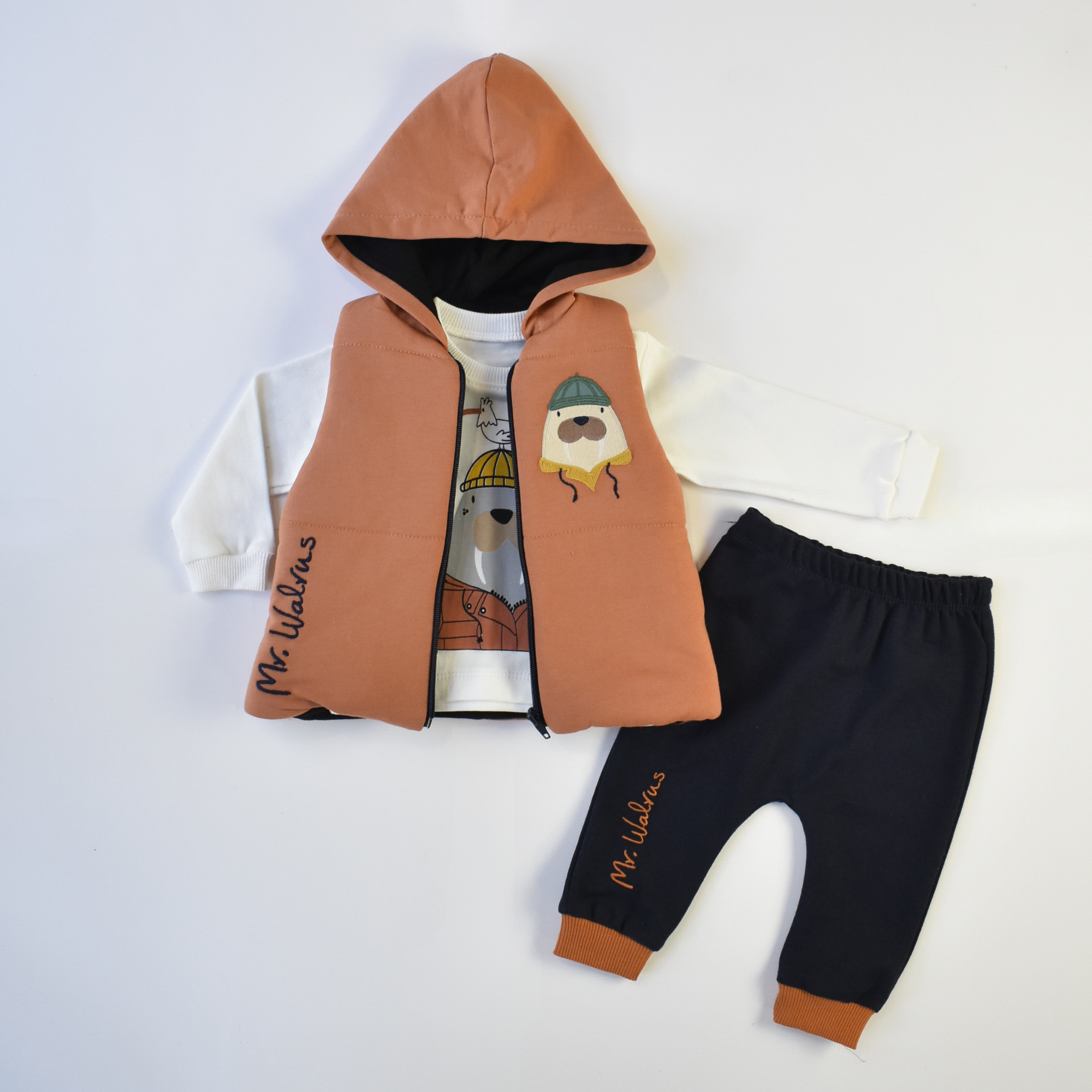Boostez votre tenue de jogging décontractée avec cette combinaison chic composée d'un gilet à capuche sans manches, d'une chemise à manches longues imprimée et d'un pantalon en coton douillet assorti - tous fabriqués en 100 % coton pour votre petit garçon à la mode.