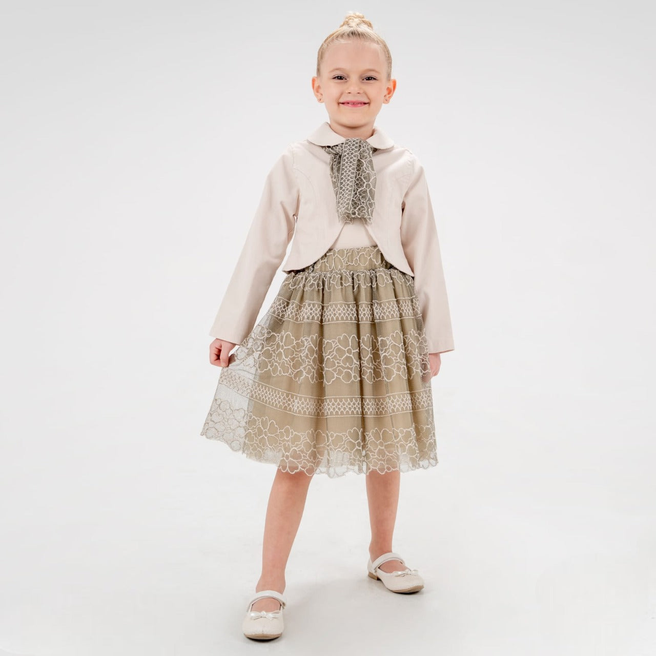 Superbe robe en tulle avec doublure en coton (55% coton / 45% polyester) pour votre petite chérie avec ceinture à la taille et cardigan original assorti pour cette tenue de vacances parfaite (55% coton / 45% polyester).