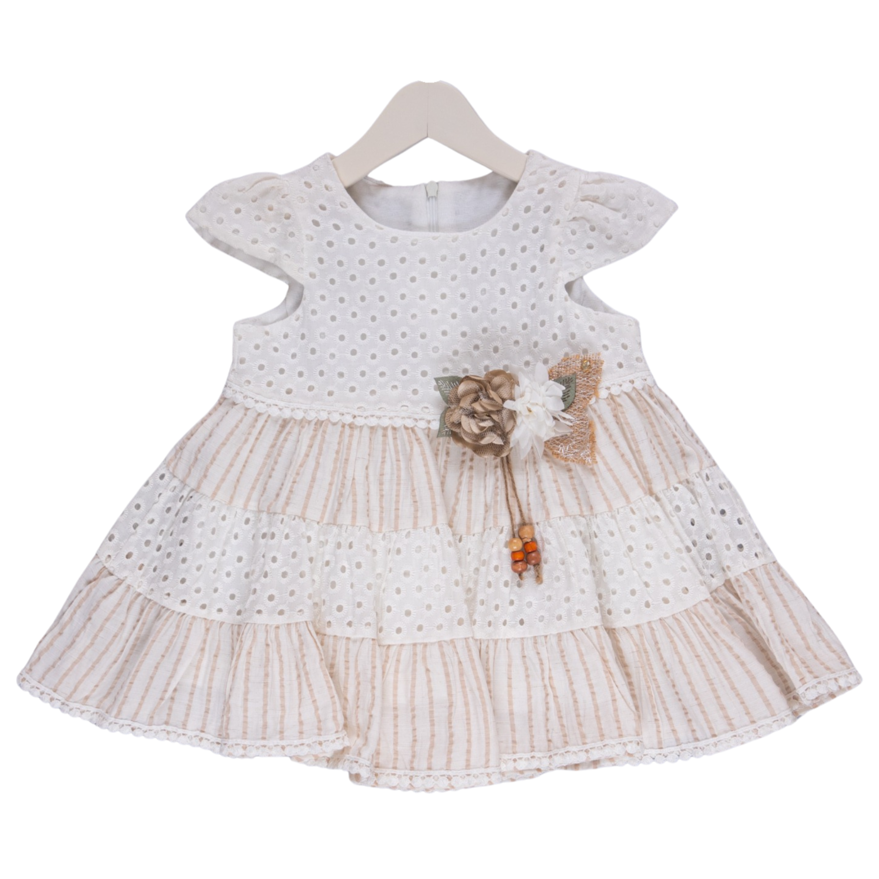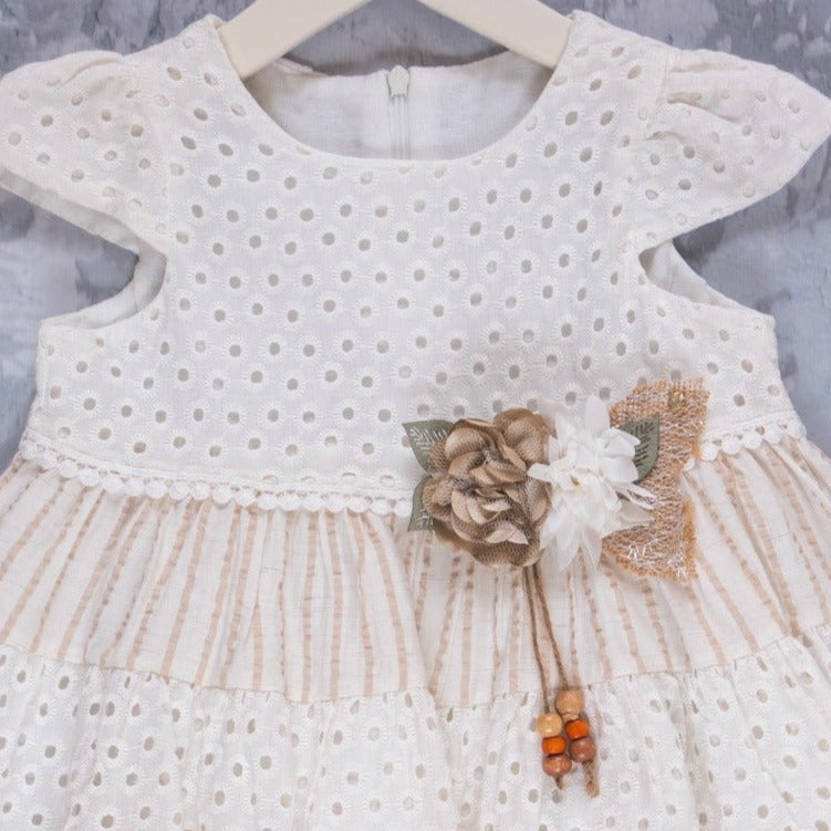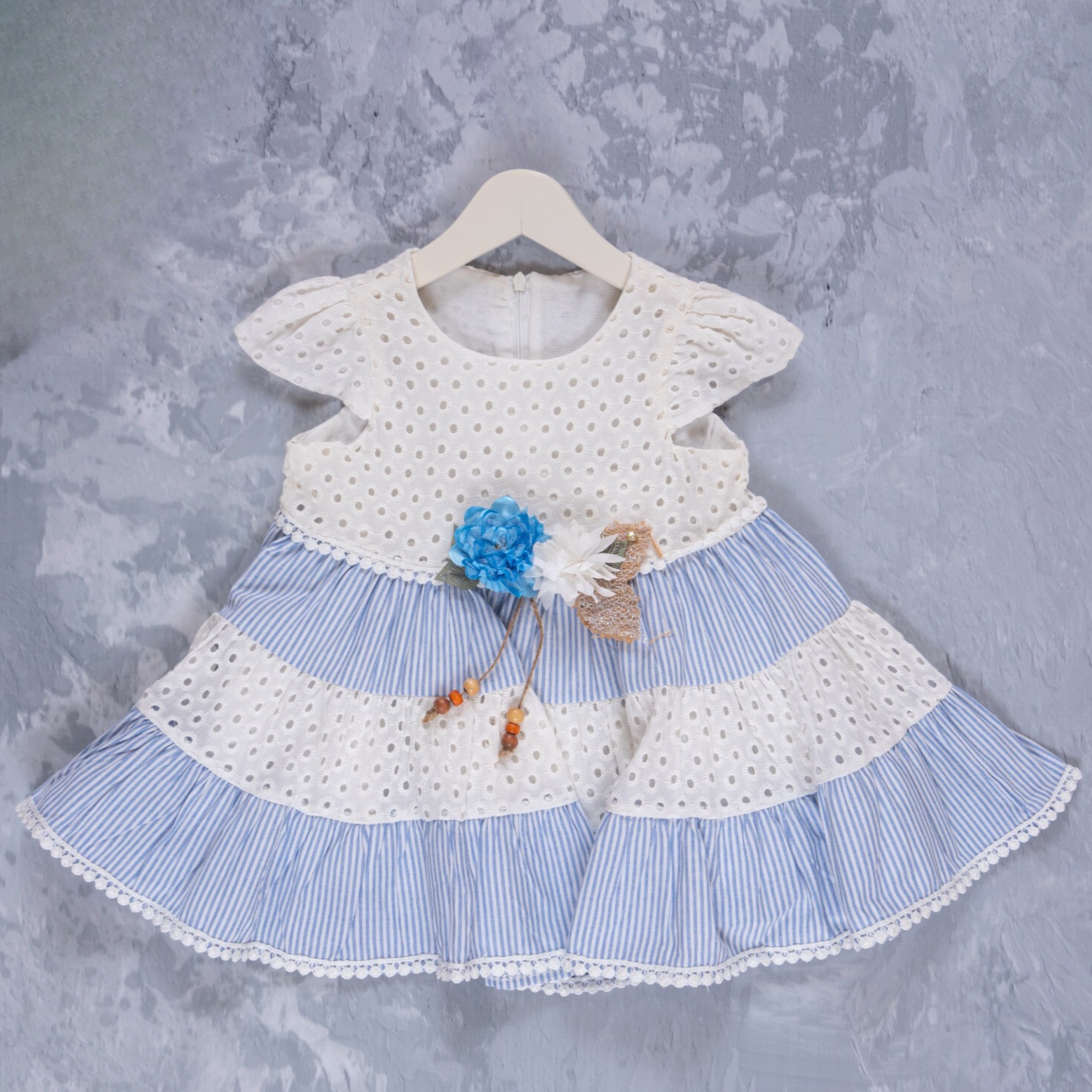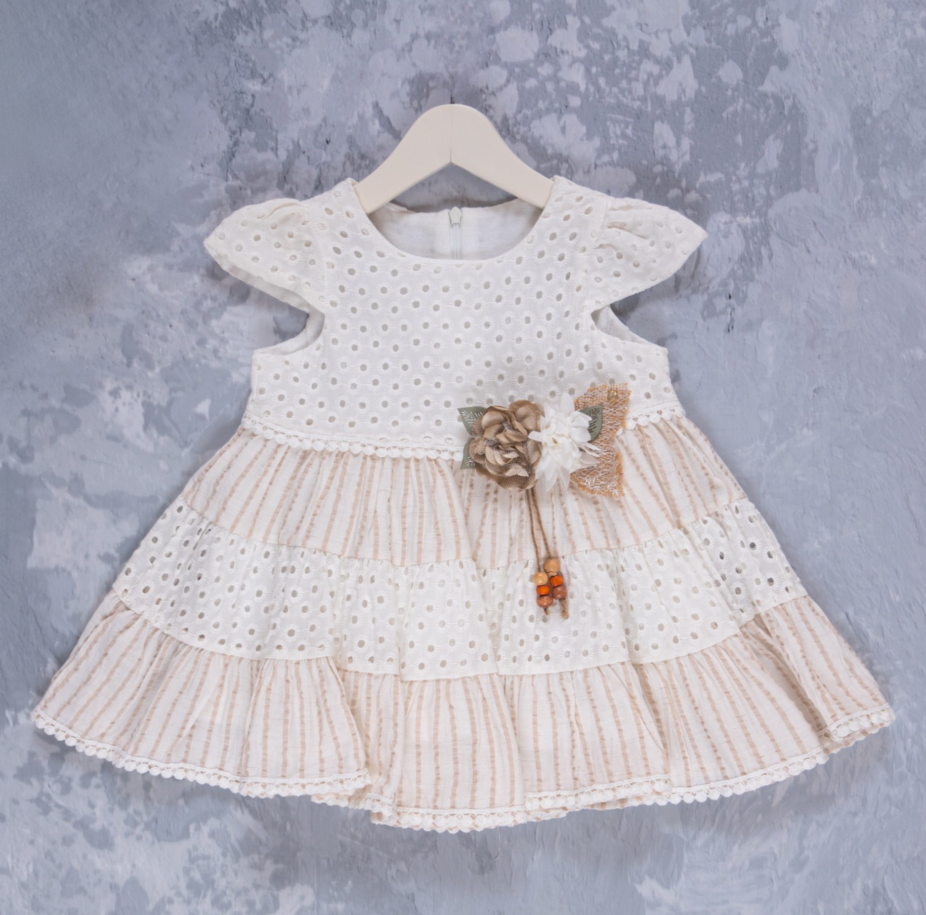 Cette belle robe en dentelle a une doublure en coton doux et de charmantes rayures, ornées d’un ornement de fleur mignon à l’avant. C’est un choix parfait pour toute occasion.