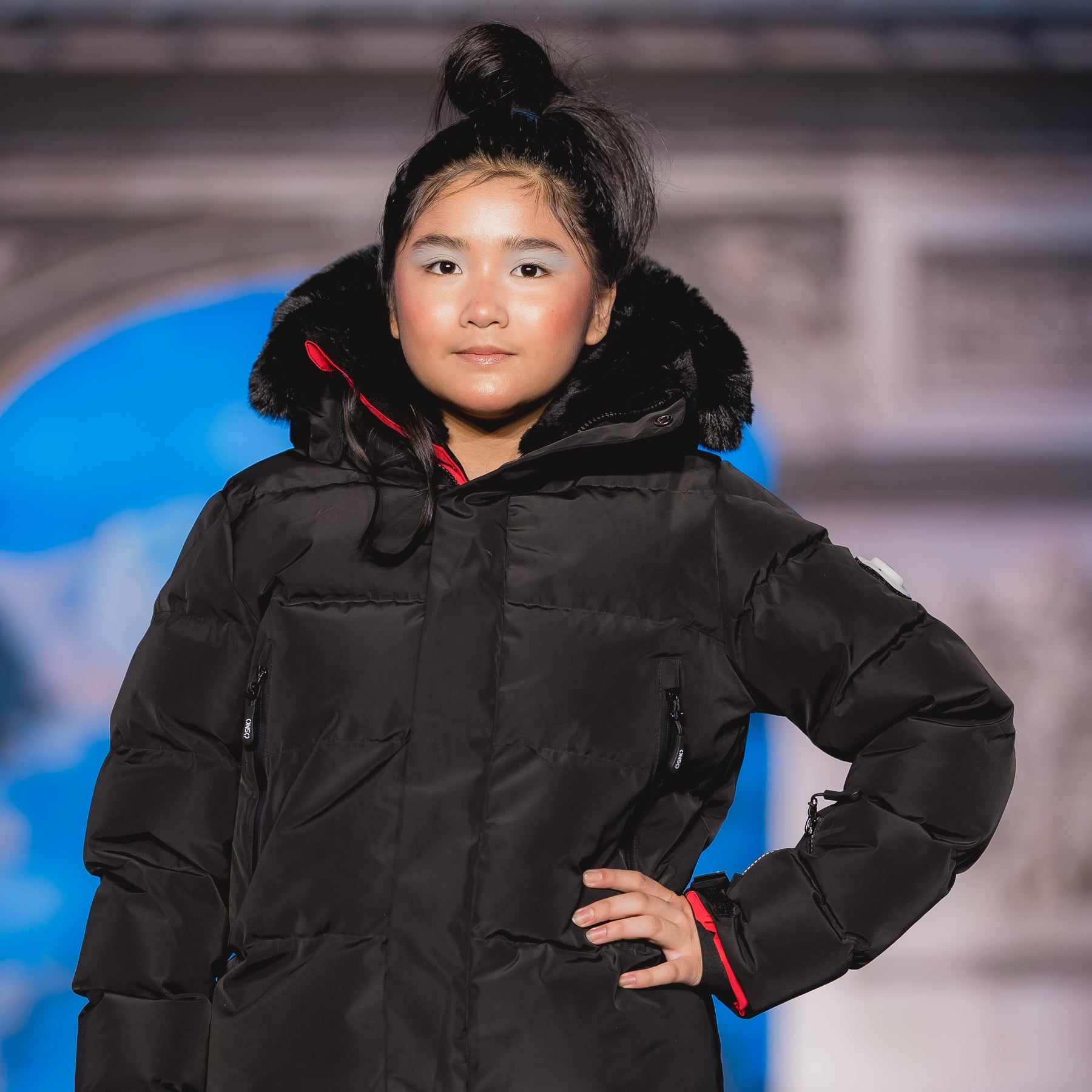 Cache-cou intégré :Son col montant, doublé de fourrure douce, fait office de cache-cou intégré. Le rabat de protection intérieur assure à votre enfant une chaleur optimale, même lorsque la veste n'est pas entièrement zippée.