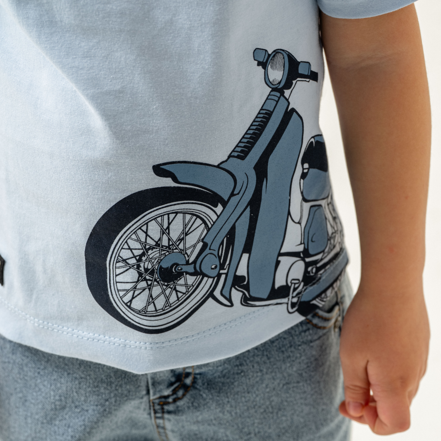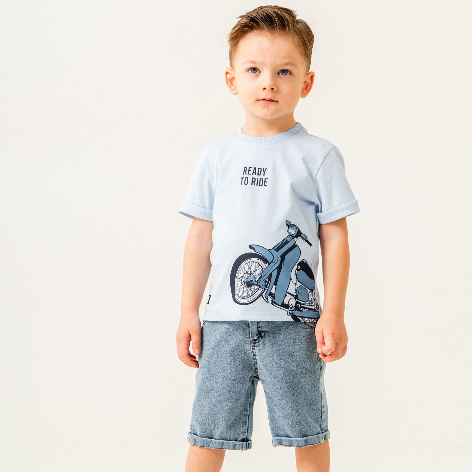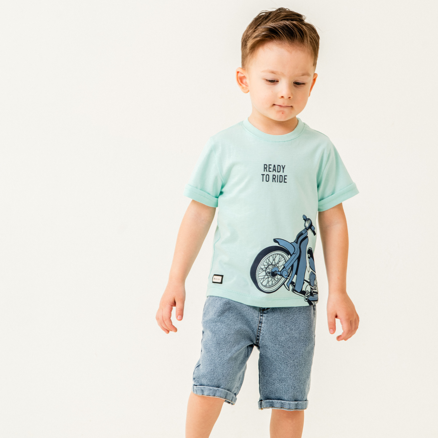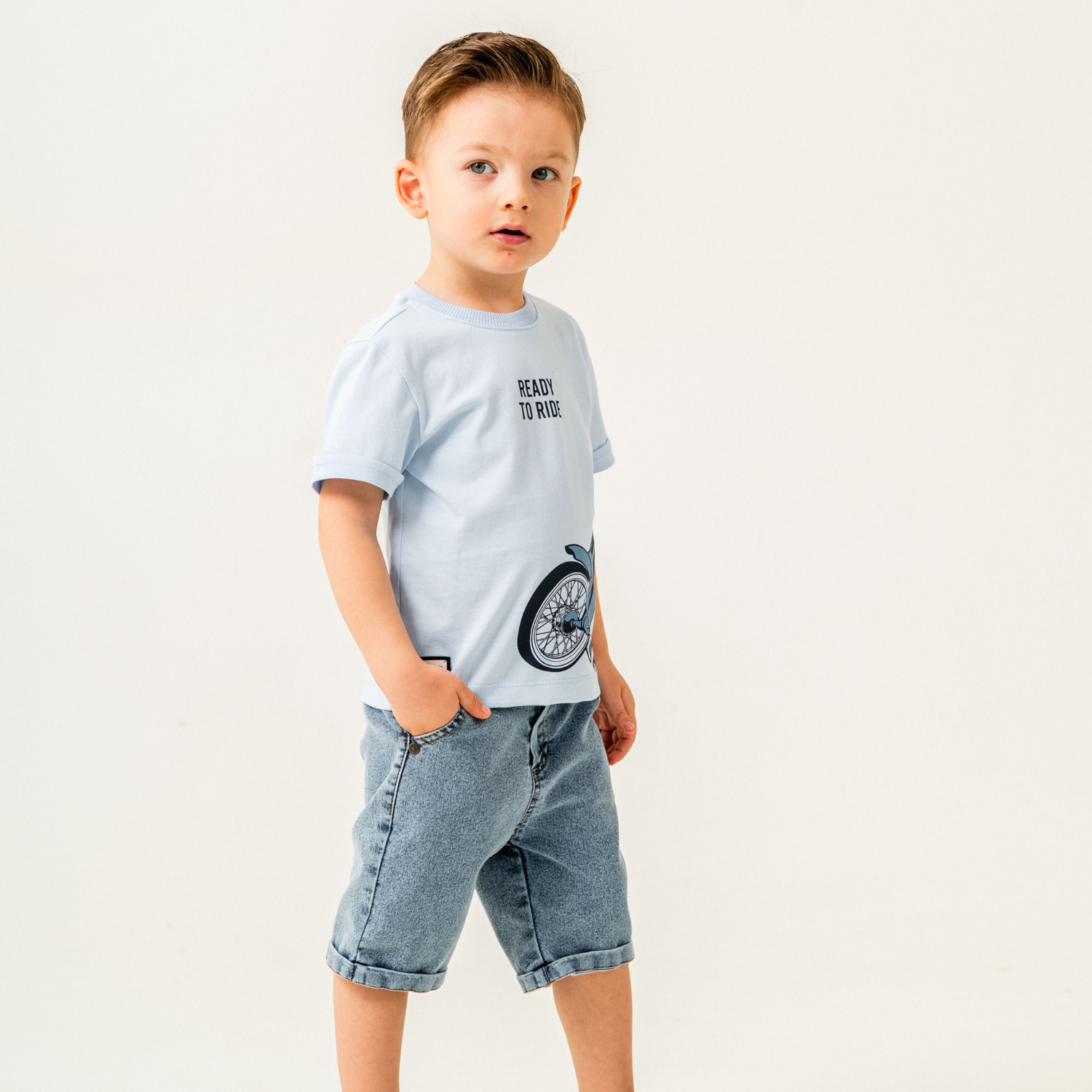 Préparez votre enfant à jouer avec cette tenue amusante et élégante ! Le T-shirt en coton doux est orné d'un motif de vélo. Associé à un short en denim classique, cet ensemble est à la fois confortable et durable pour les aventures de tous les jours. Parfait pour les sorties décontractées et les plaisirs de l'été !