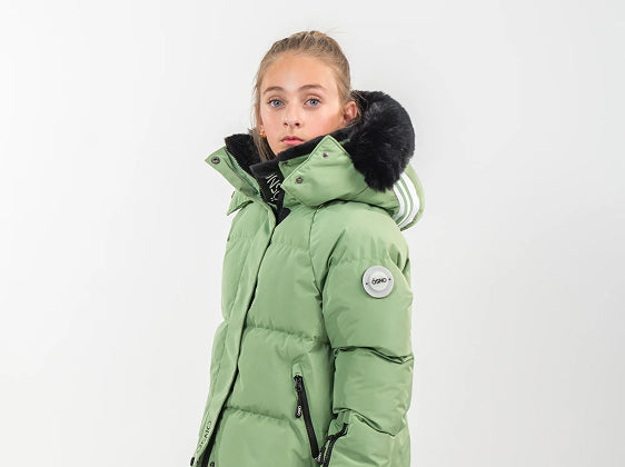 Cache-cou intégré :Le col montant, doublé de fourrure douce, fait office de cache-cou intégré. Le rabat de protection intérieur assure le confort de votre enfant, même lorsque la veste est partiellement ouverte.