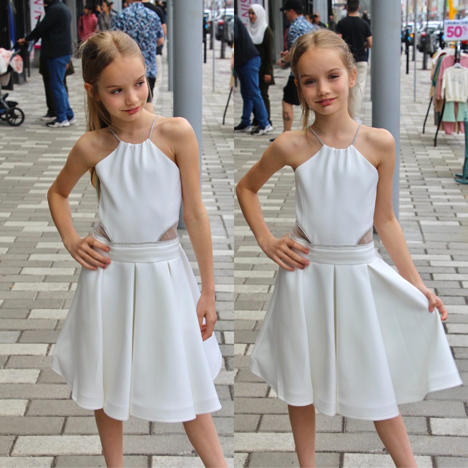 Rehaussez son élégance avec notre robe courte en satin conçue pour le style de votre préadolescente. Le haut de la robe est orné de perles brillantes et de paillettes, ajoutant une touche de glamour. Notre dos élastique unique garantit un ajustement parfait à chaque fois, et le tissu satiné lisse rehausse la sophistication globale, en faisant le choix idéal pour des occasions spéciales et des événements.