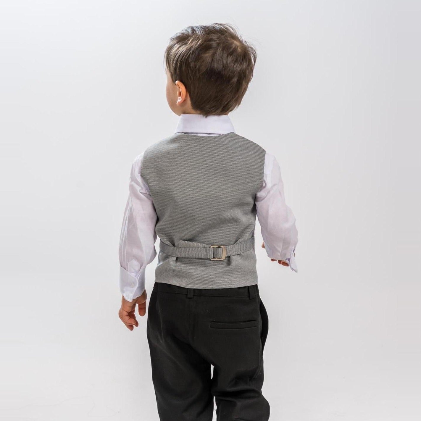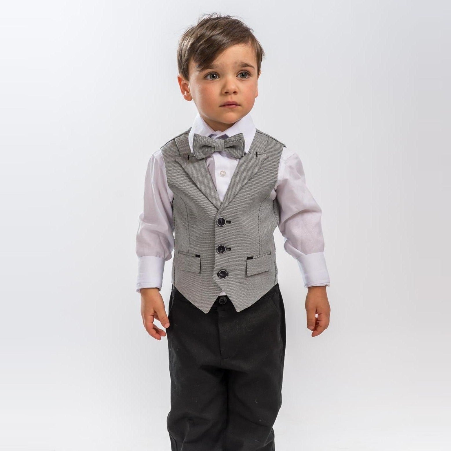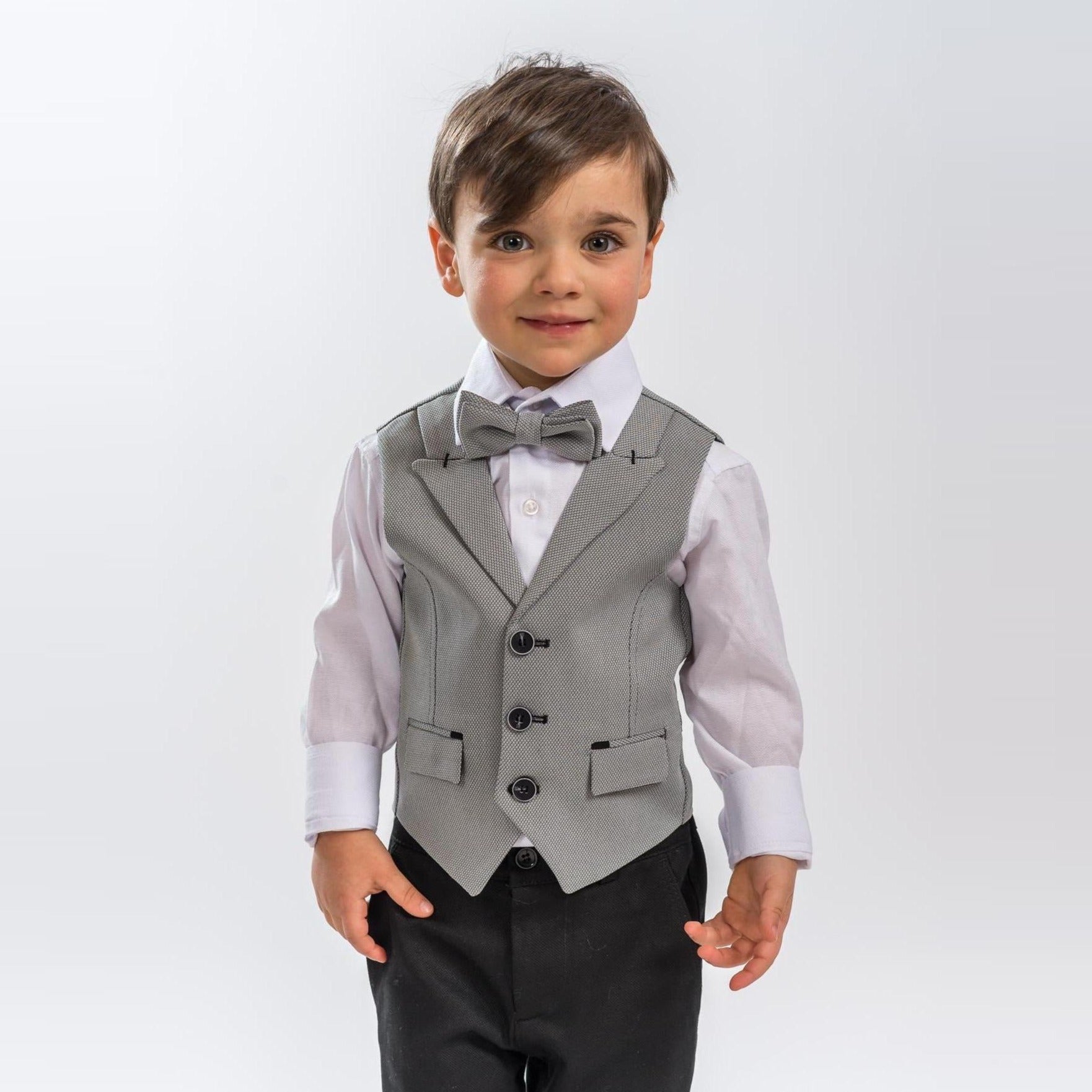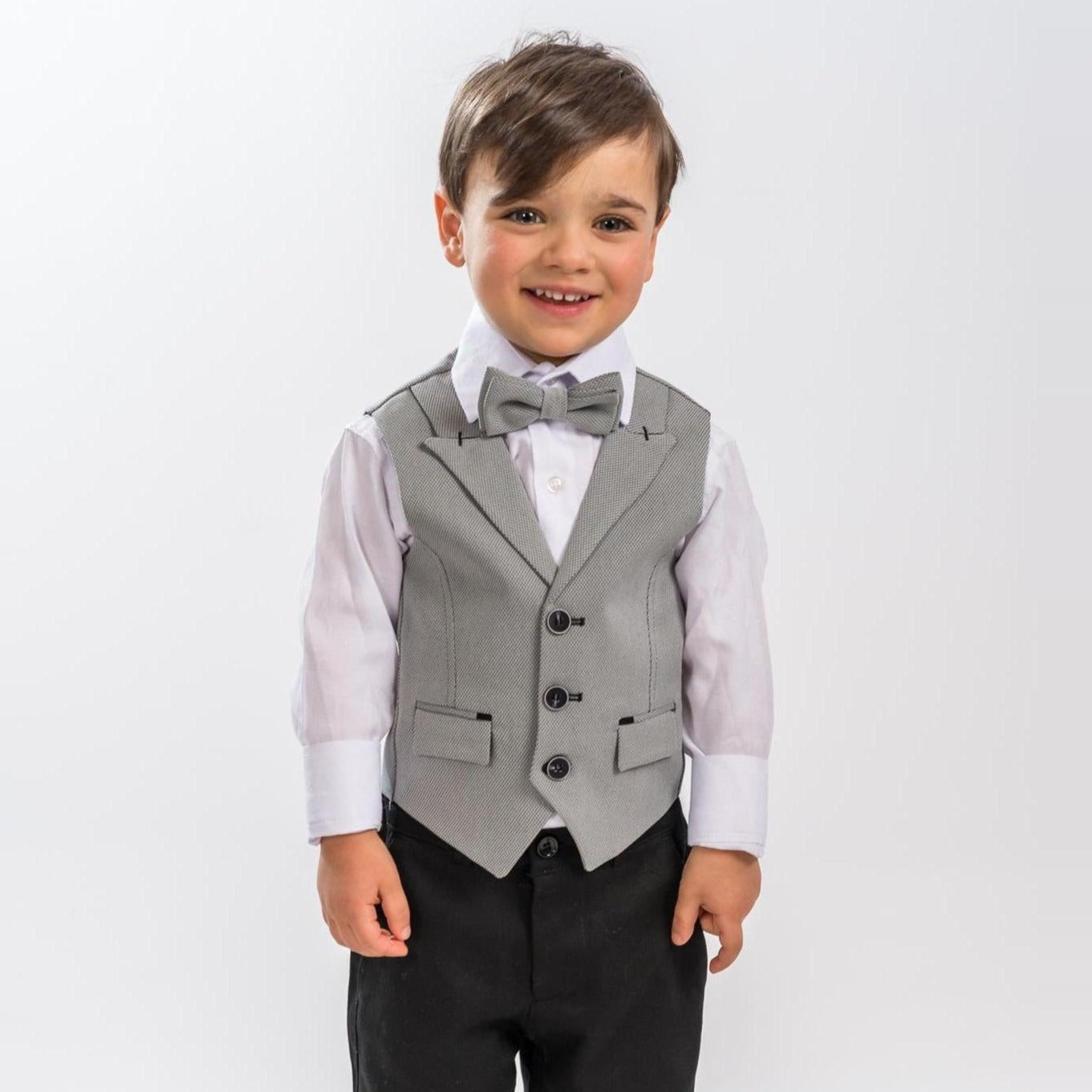 Ensemble de gilet élégant en coton tricoté comprenant un veste sans manches, une chemise en coton, un pantalon slim en coton à taille ajustable et un nœud papillon. Une vraie superstar, signé JuniorKids!