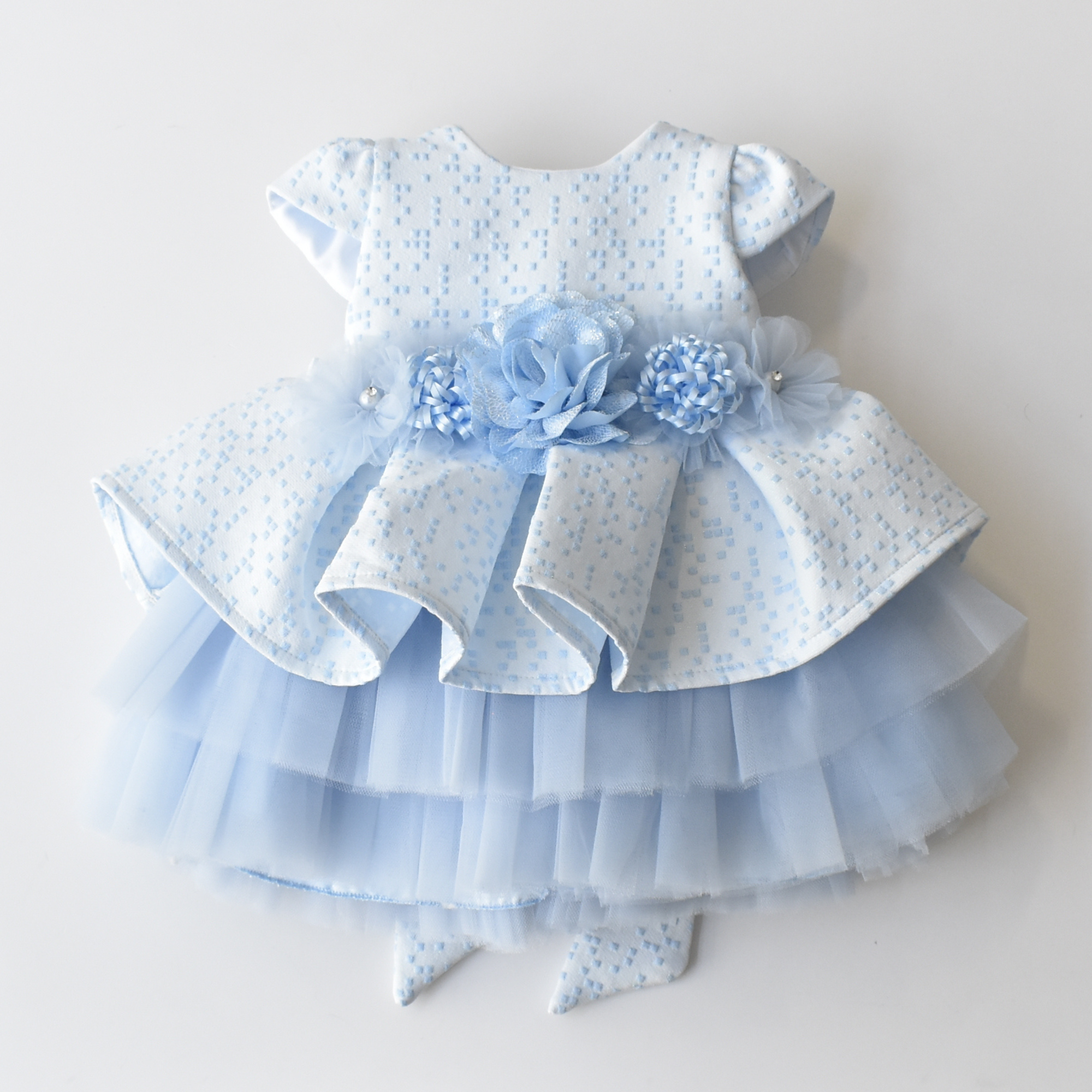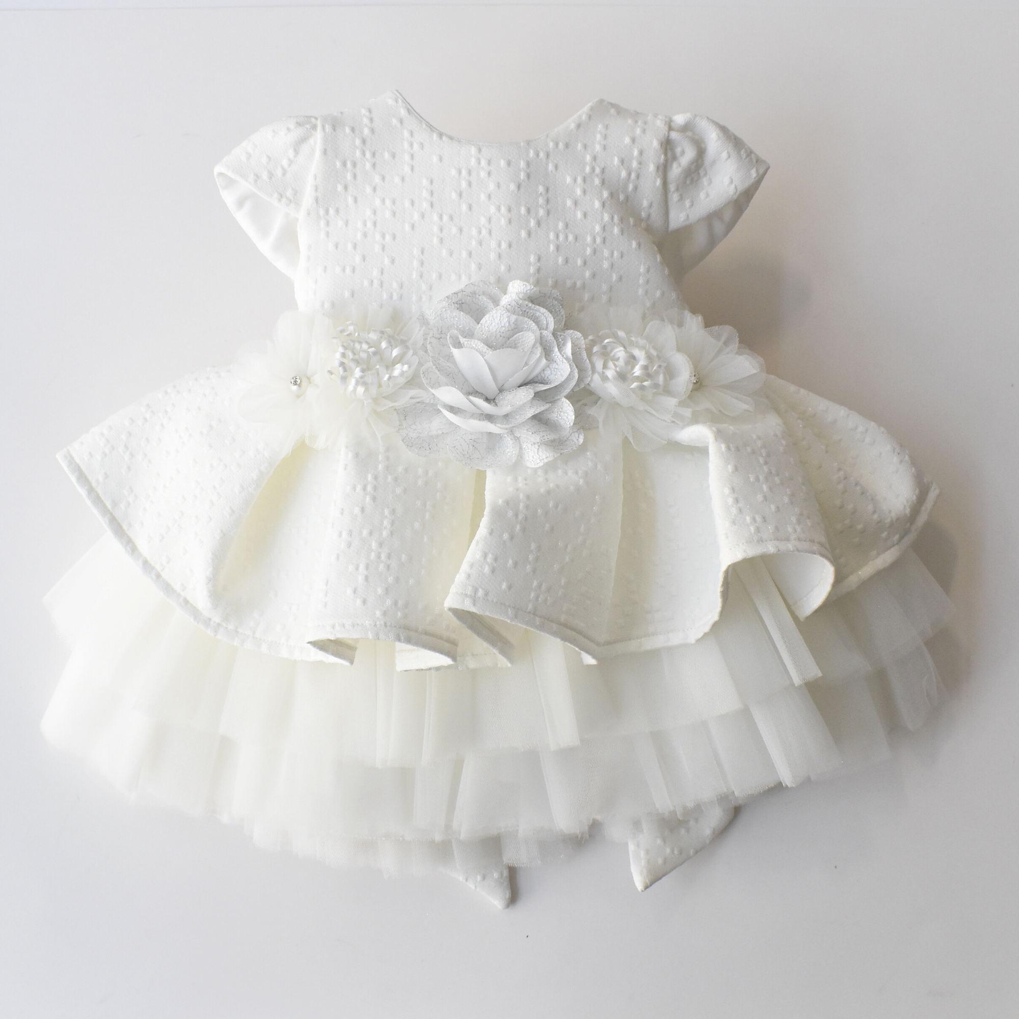 A stunning baby girl dress made for unforgettable moments. Featuring a delicate pearl and floral waistband, and layered tulle skirt, this dress is perfect for weddings, birthdays, and photoshoots.