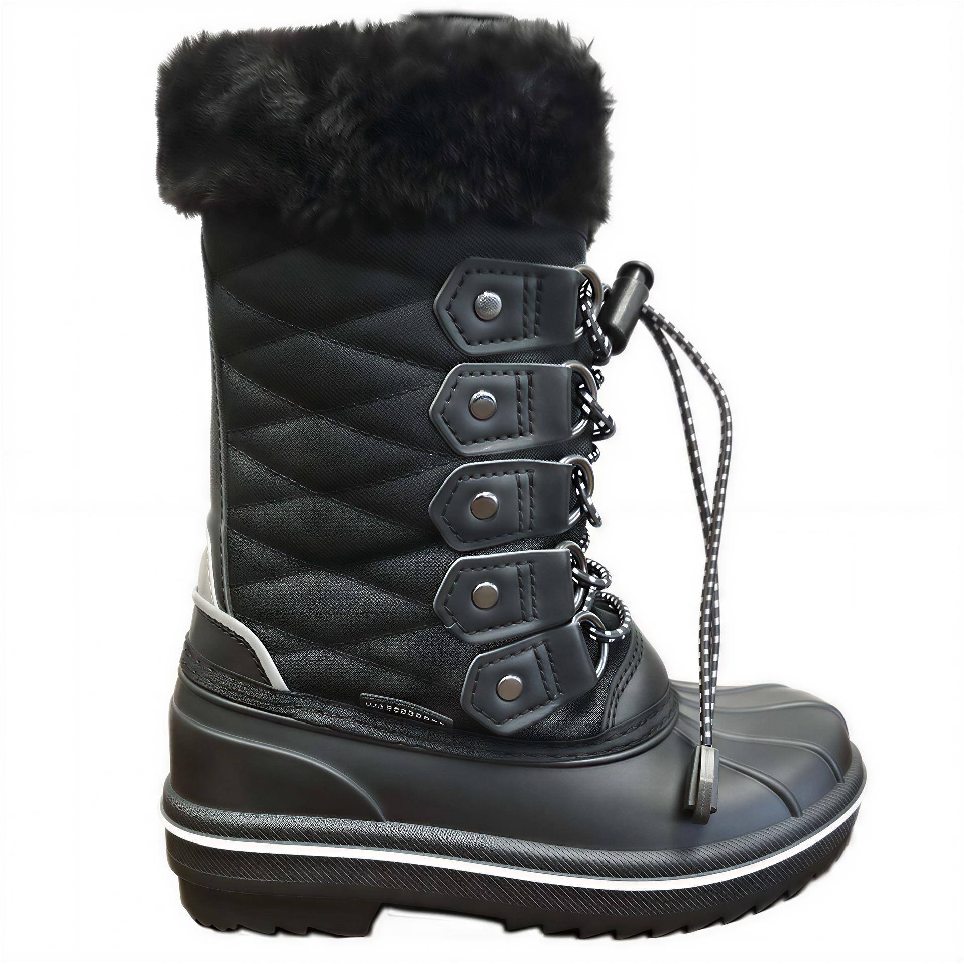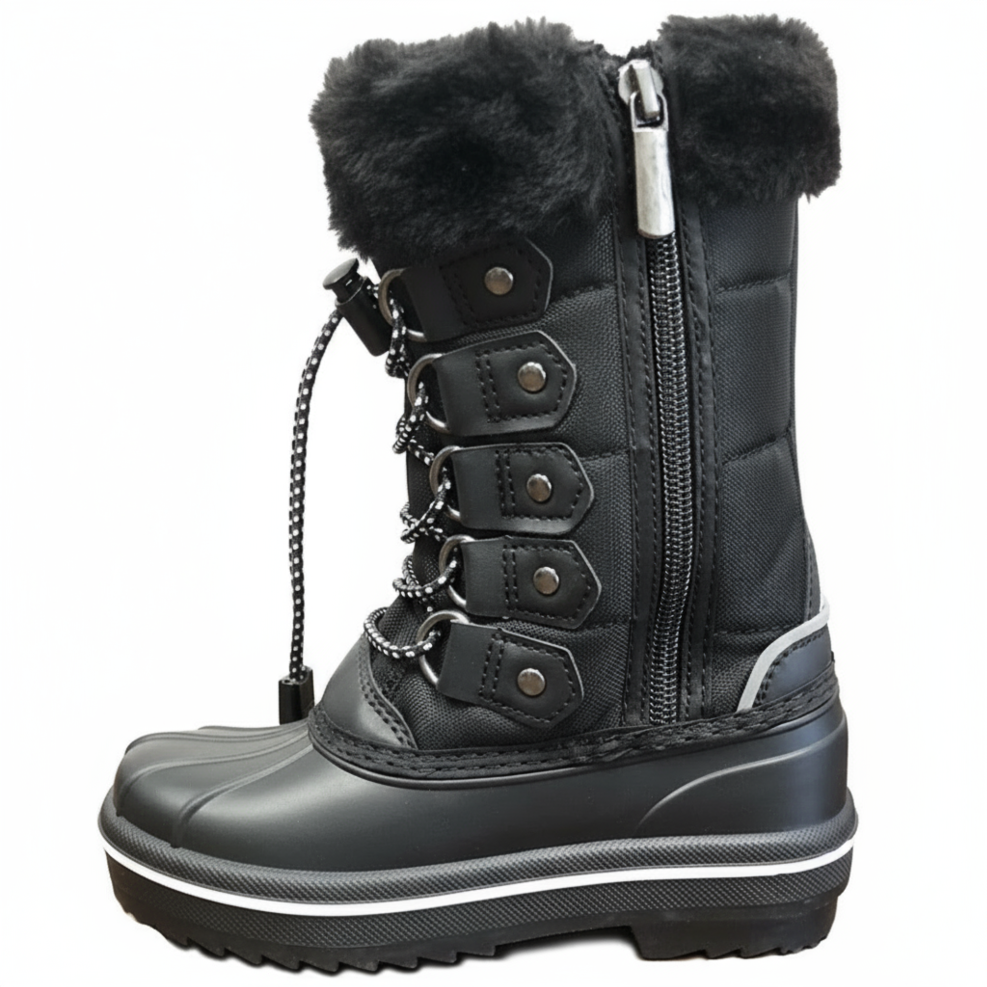 These insulated boots will keep little feet warm and comfortable while your kids run, jump and play in the snow. The waterproof rubber lower shell will keep feet dry and and the adjustable cord at top will keep out wind and snow. Easy to put on and to take off, these boots stand up against cold and snowy conditions.