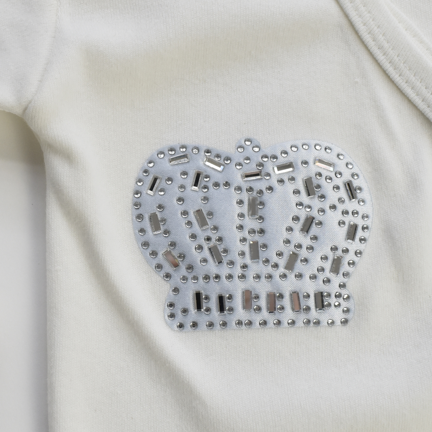 Look stylish from day one with these beautiful royal-themed 5-piece pajamas, including an asymmetrical opening sweater (100% Cotton), pants with closed bottoms (100% Cotton), anti-itching mittens, and a bib hat for your little one new.