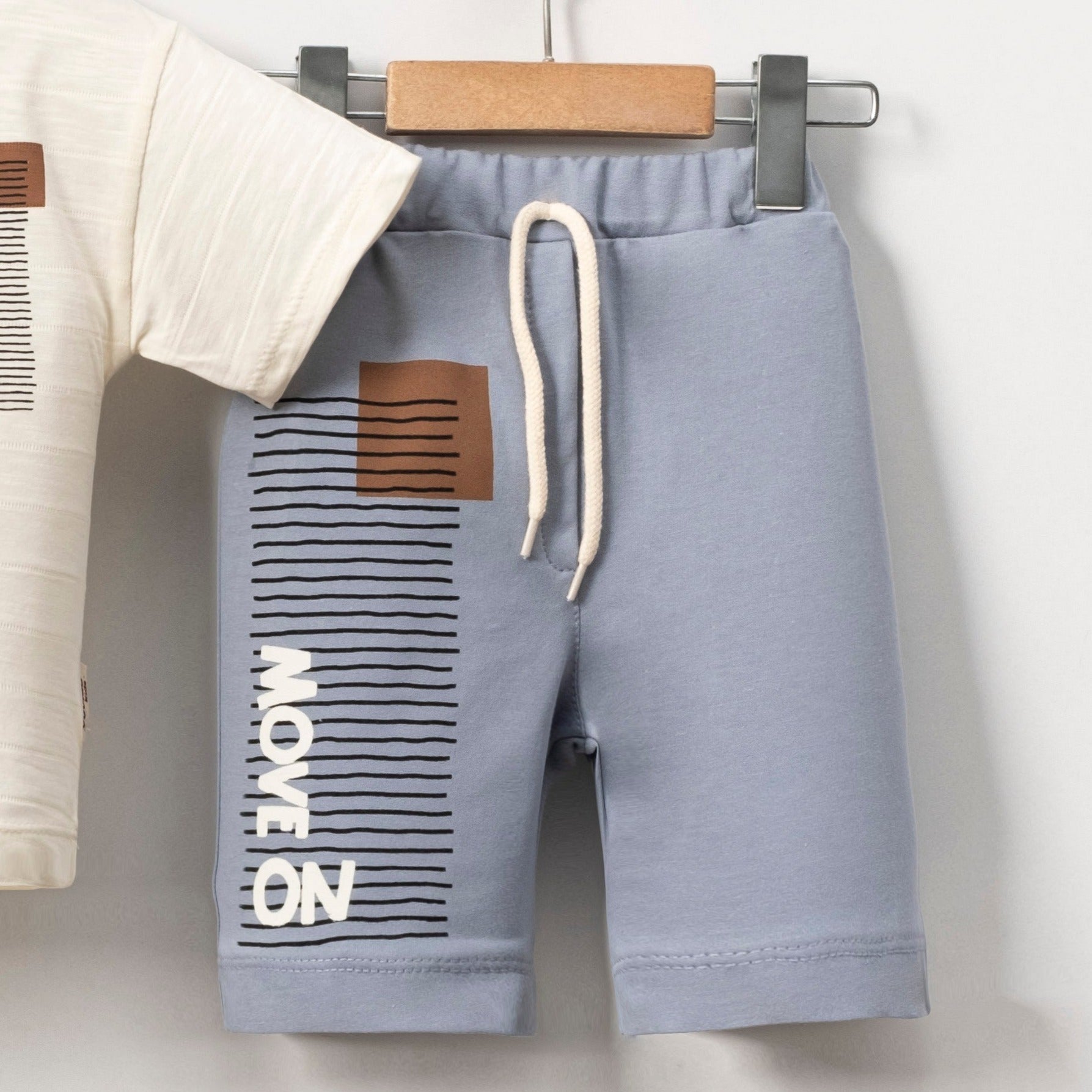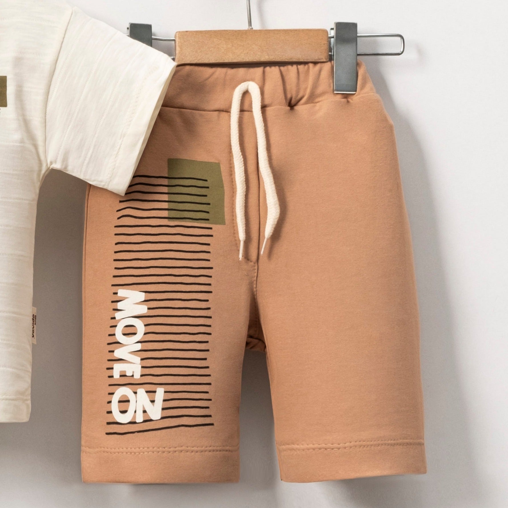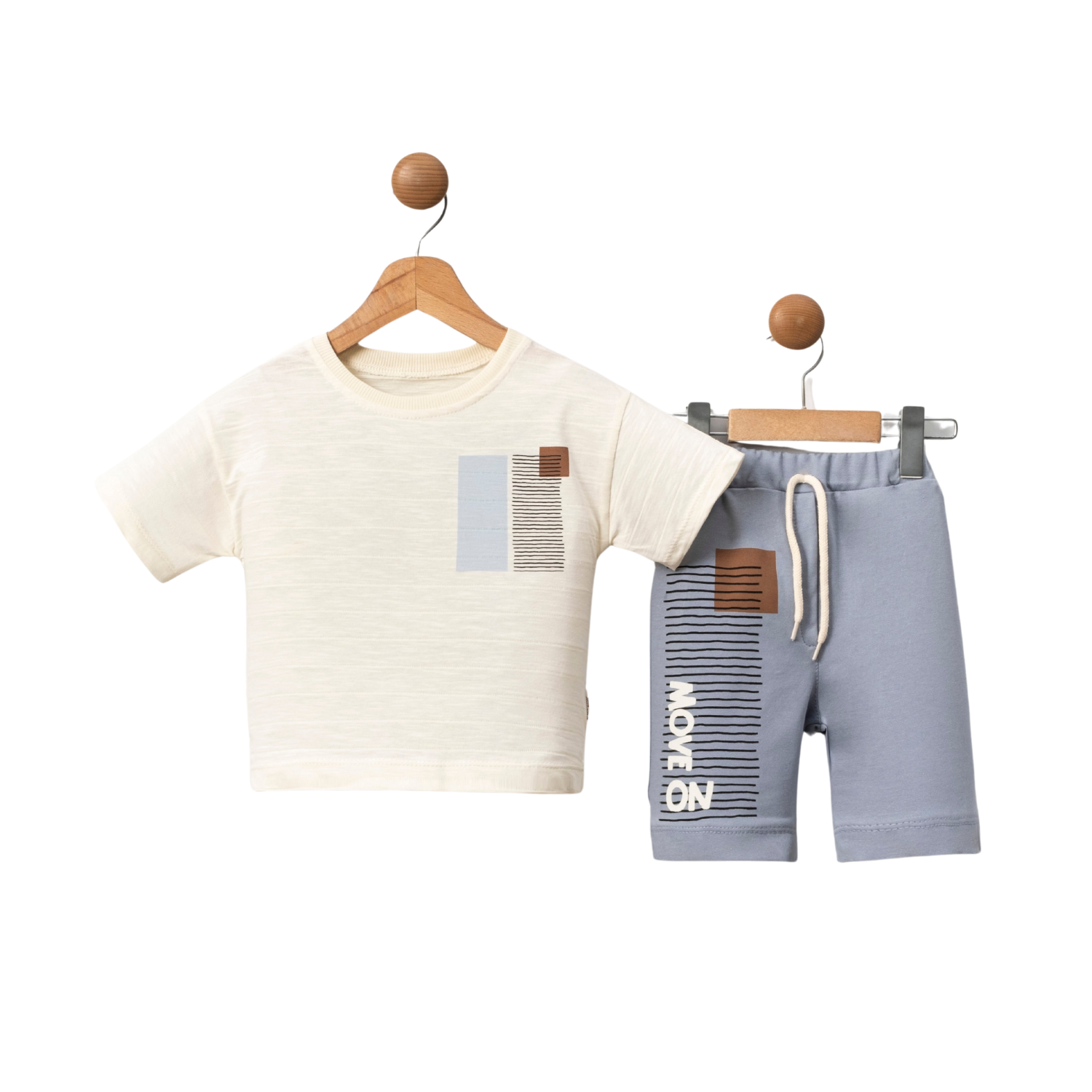A fresh new look for your little man featuring a soft cotton t-shirt (100% cotton) with slim fit elastic waist cotton shorts (100% cotton).