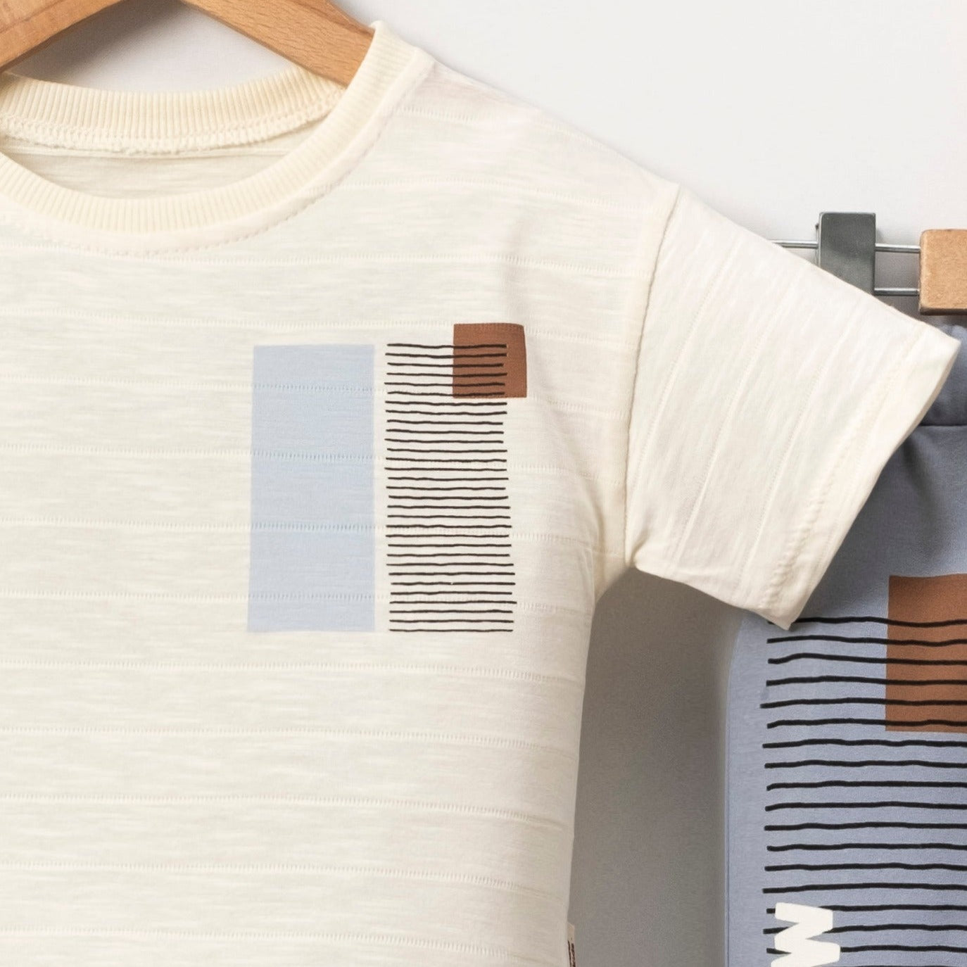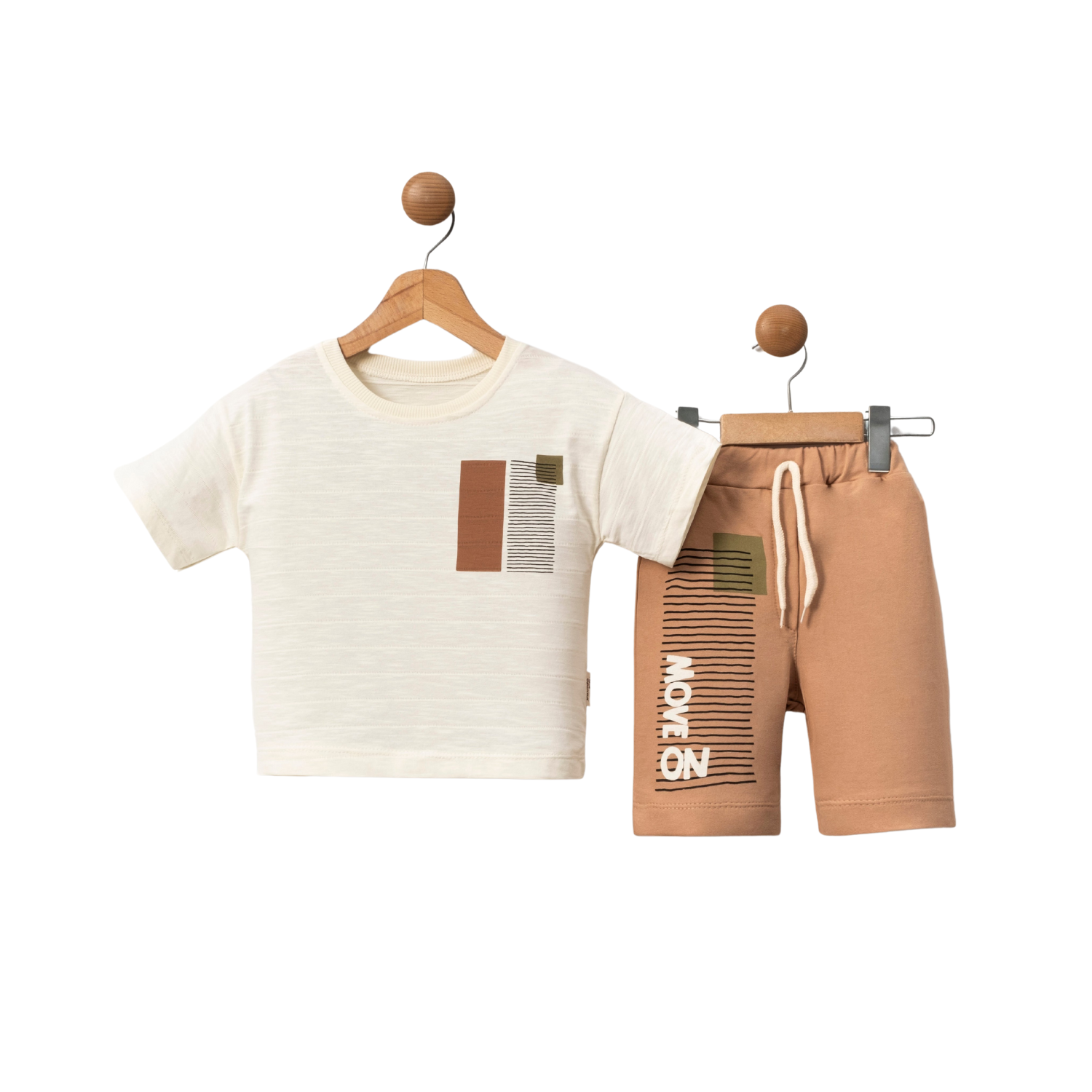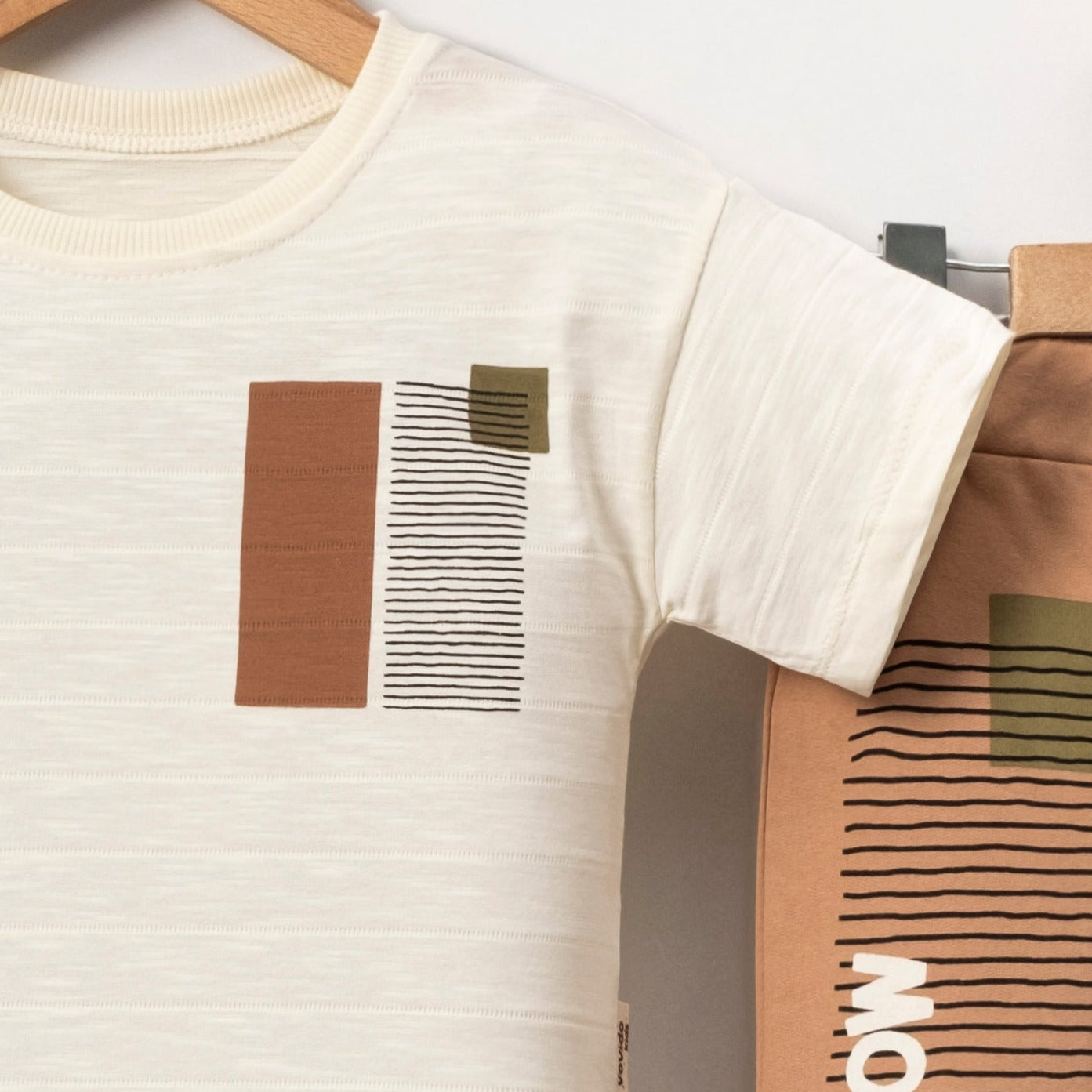 A fresh new look for your little man featuring a soft cotton t-shirt (100% cotton) with slim fit elastic waist cotton shorts (100% cotton).